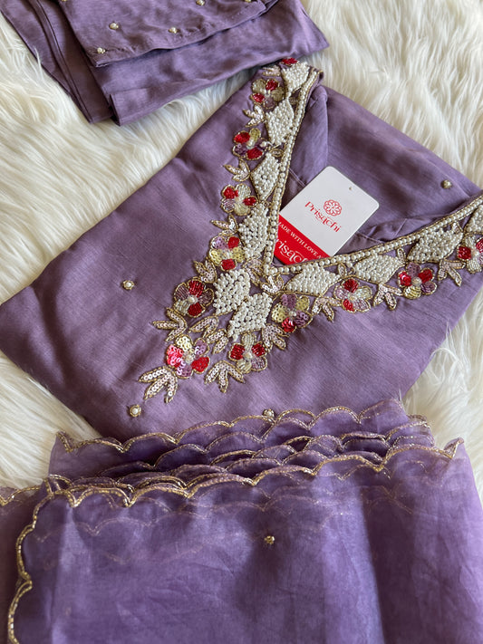 Purple Embroidered kurta Pant with dupatta with Zardosi work