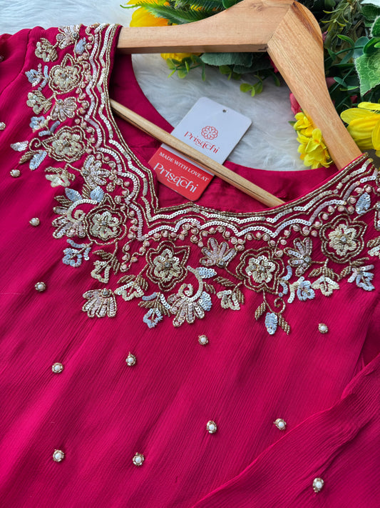 Prisachi Desinger neck embroidered kurta set with dupatta for Women
