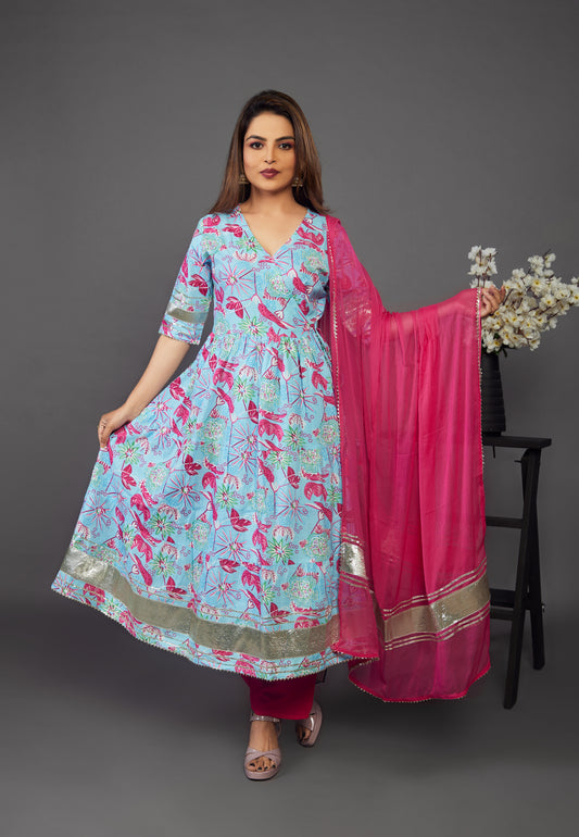 Cotton Alia cut Anarkali gown and pant with dupttaa