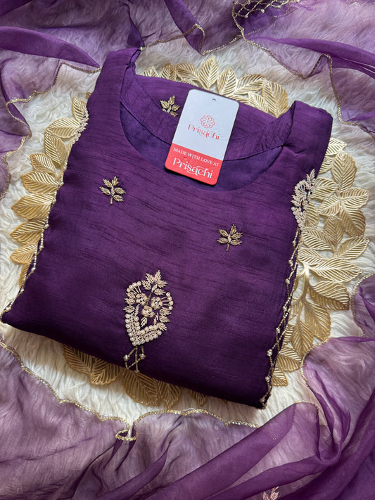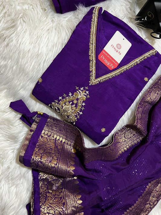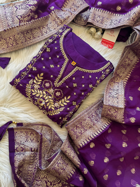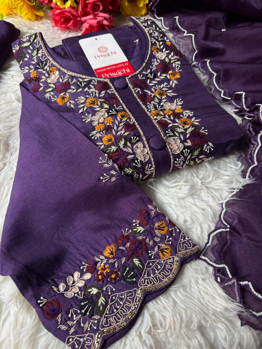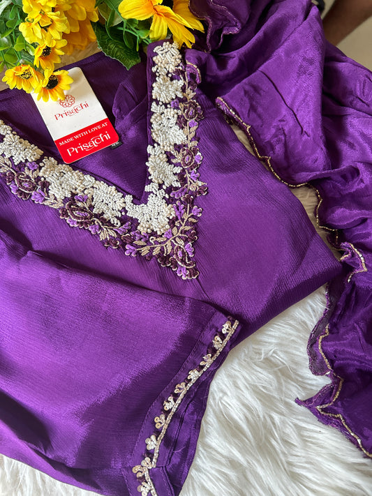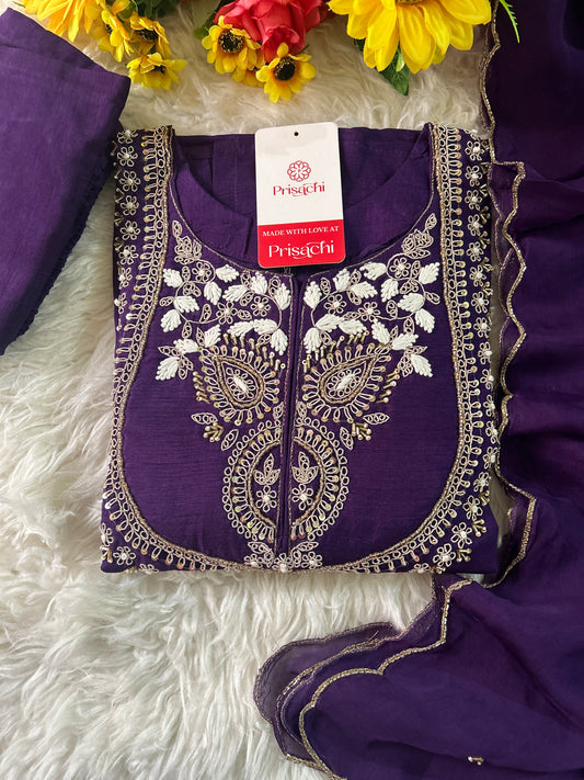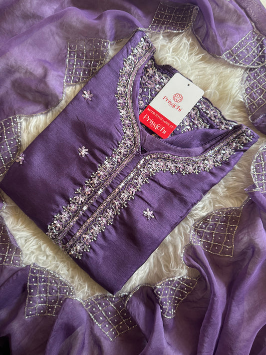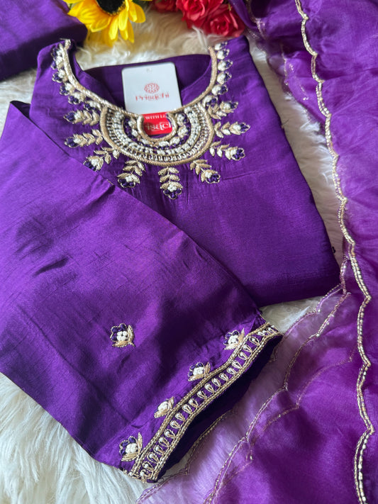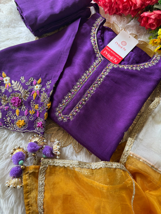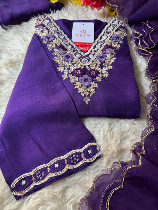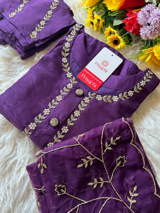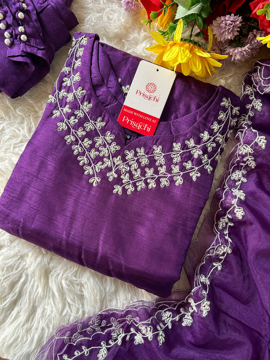 Prisachi Purple Designer Embroidered kurta set with dupatta