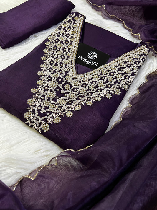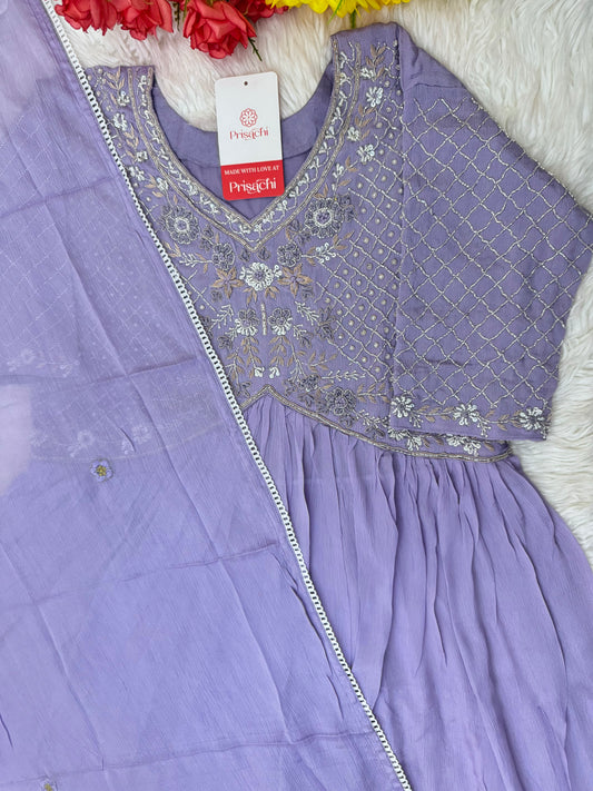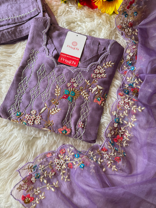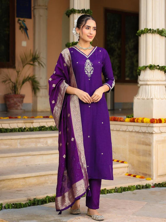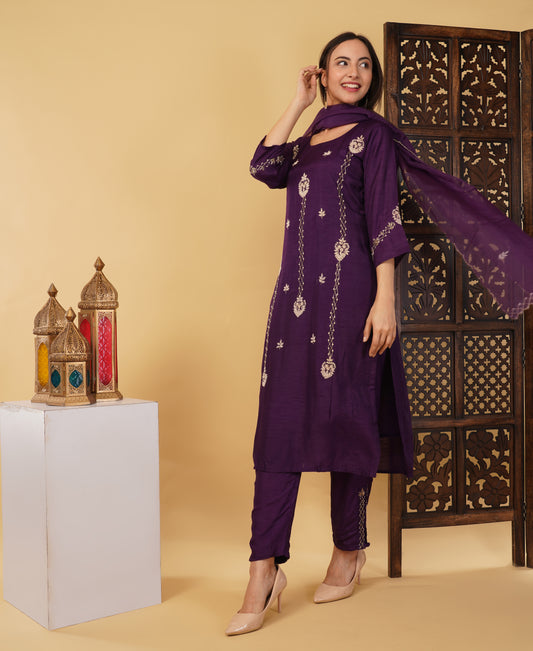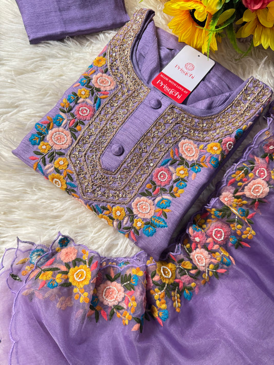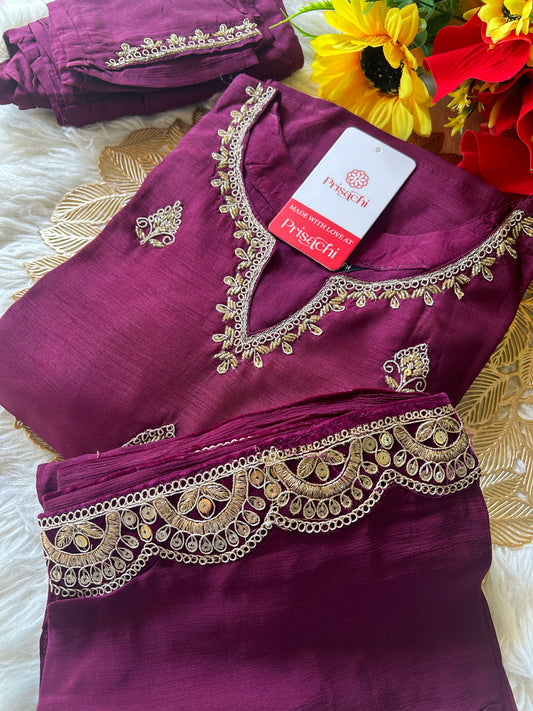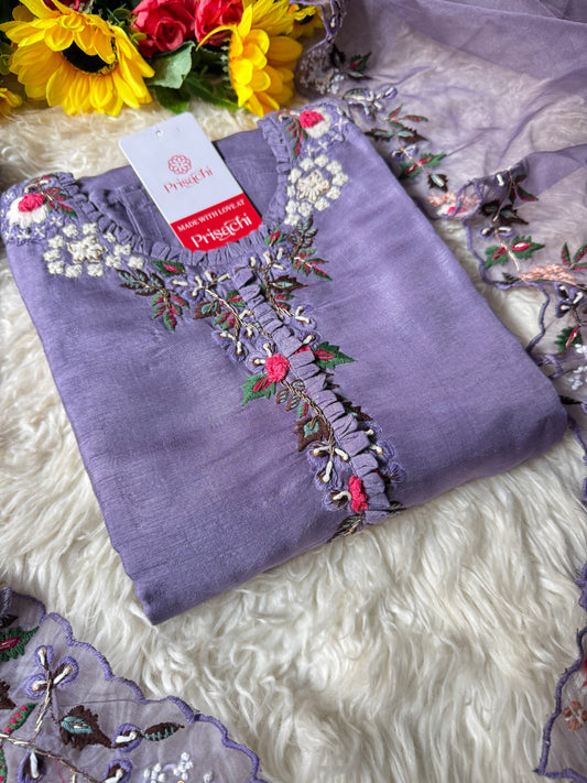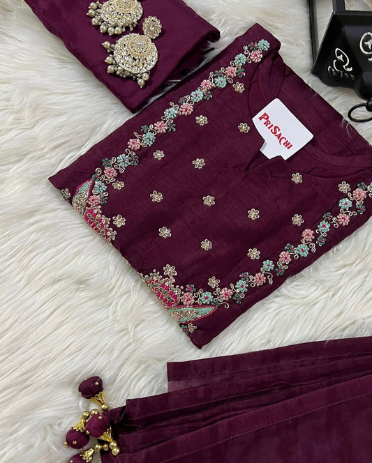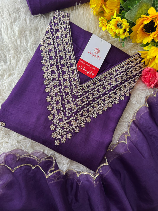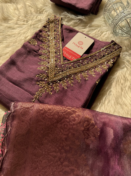Prisachi Purple Designer Embroidered kurta set with dupatta