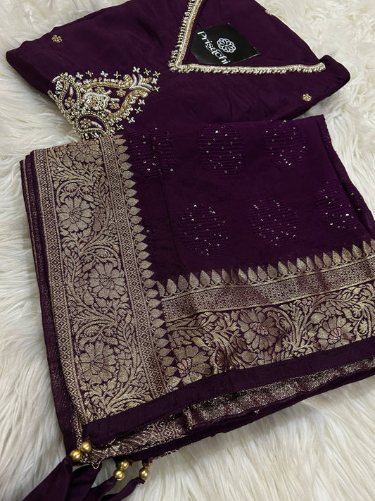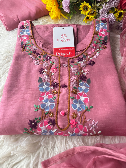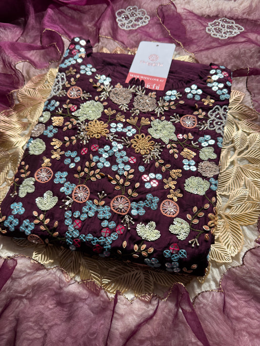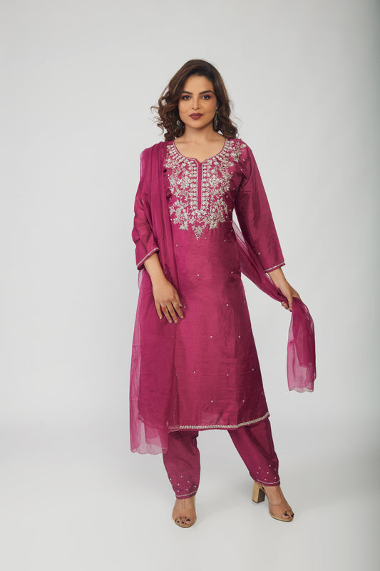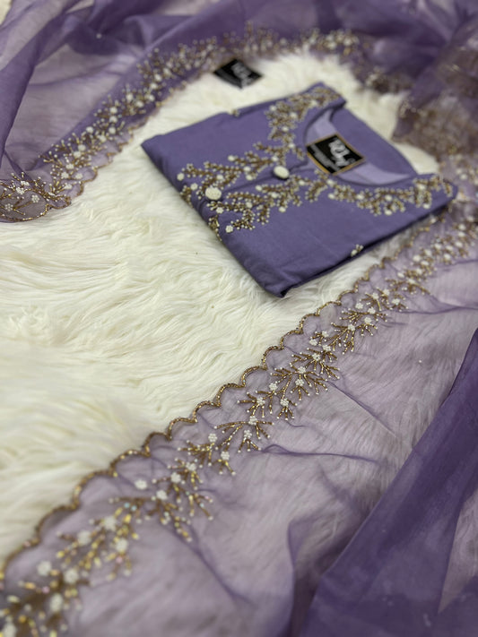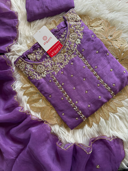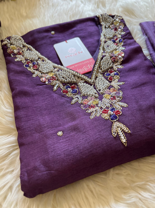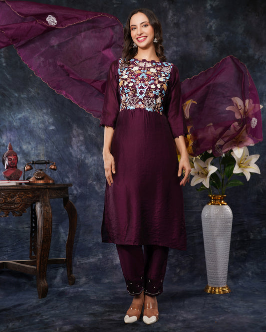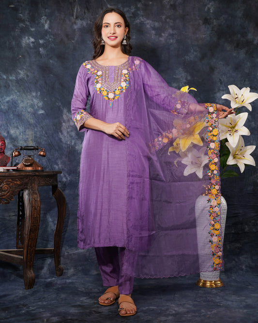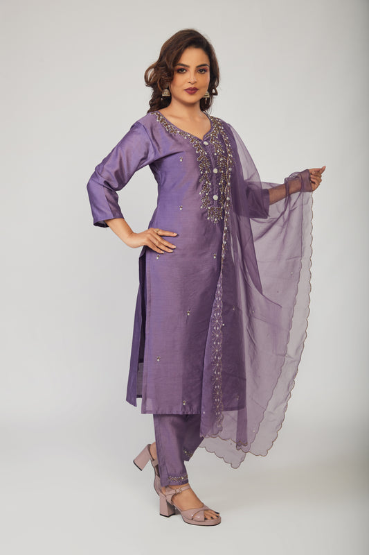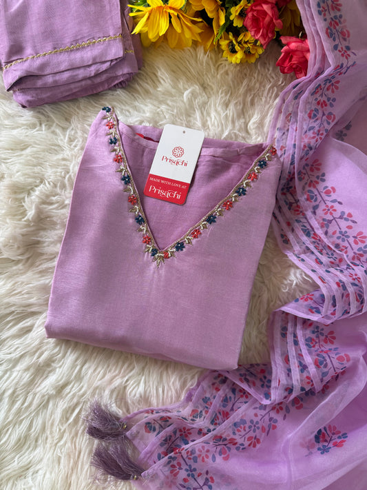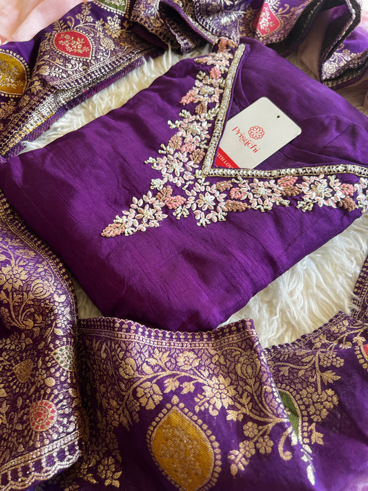 Prisachi Purple Designer Embroidered kurta set with dupatta
