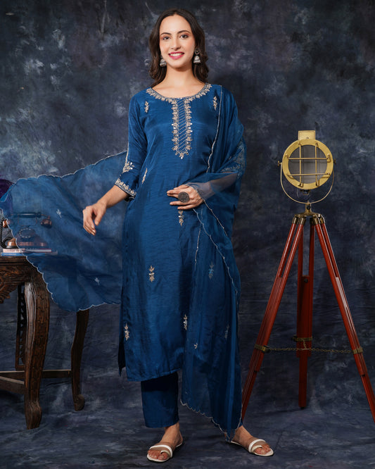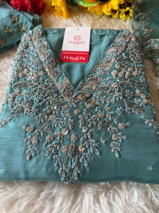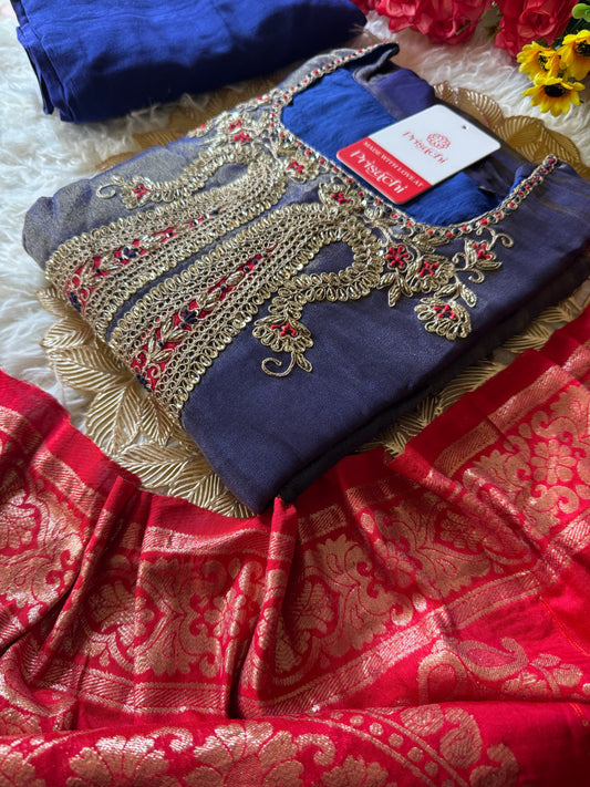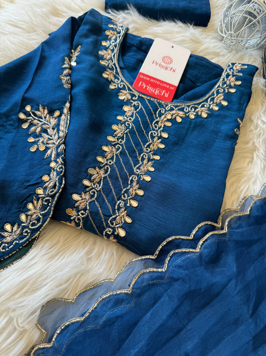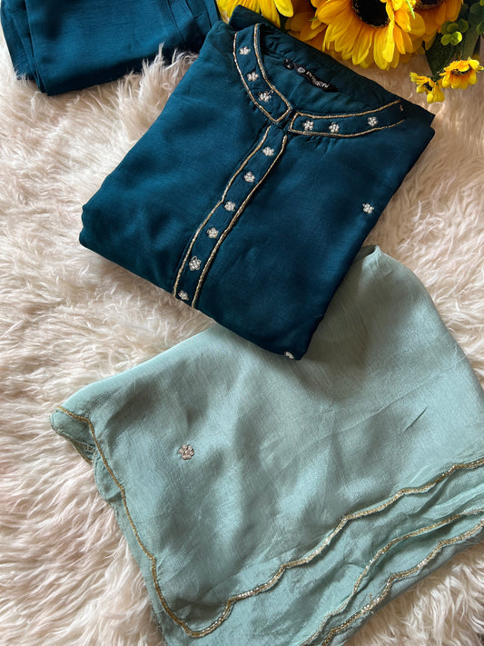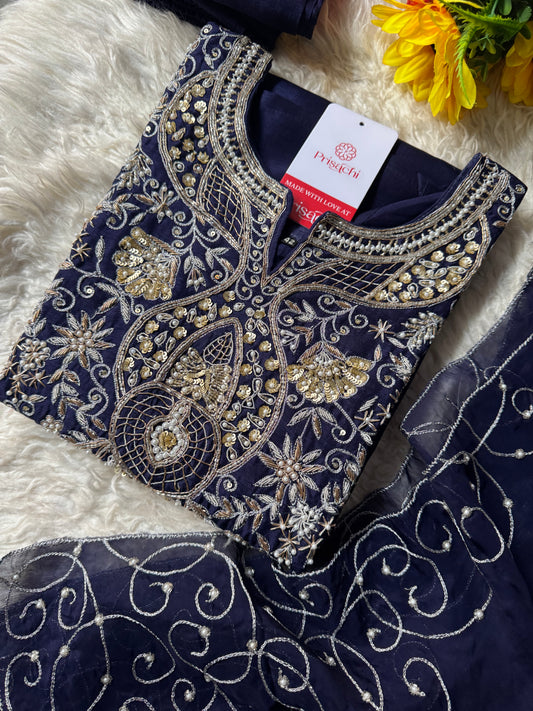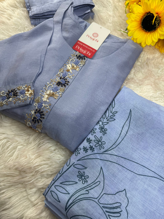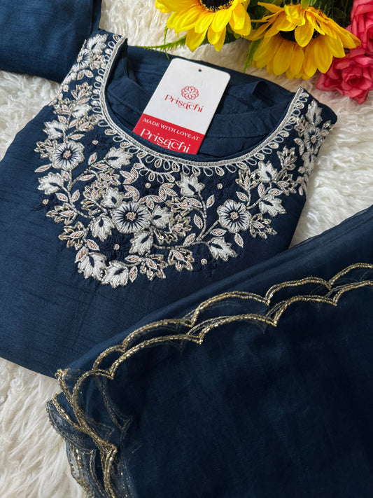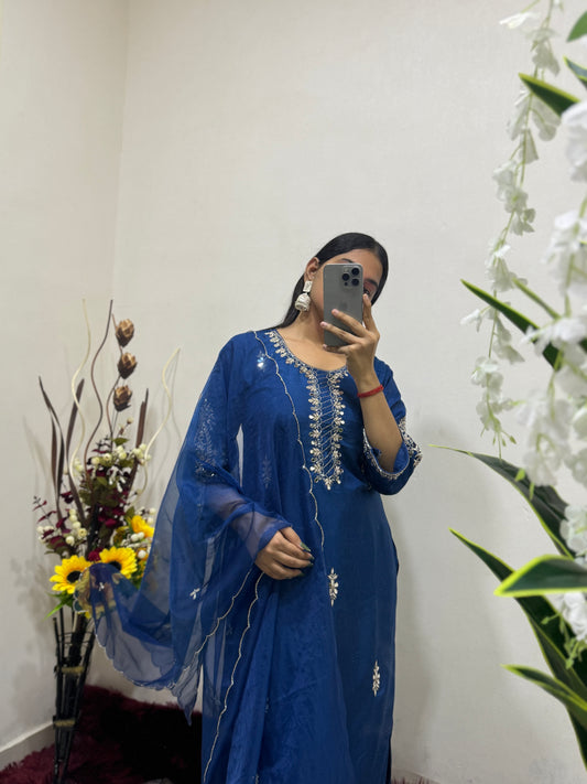 Blue Desinger Embroidered kurta Bottom with dupatta