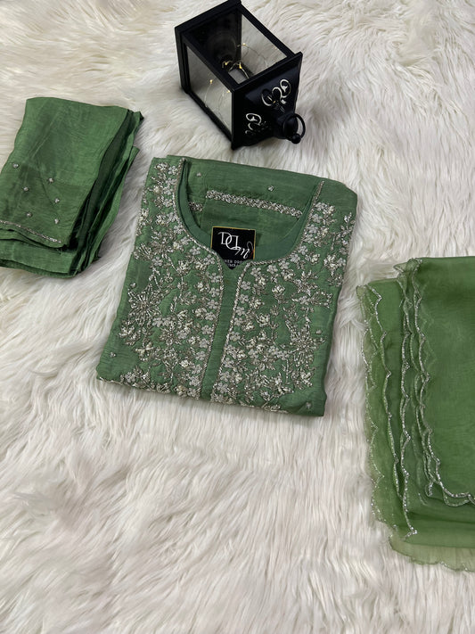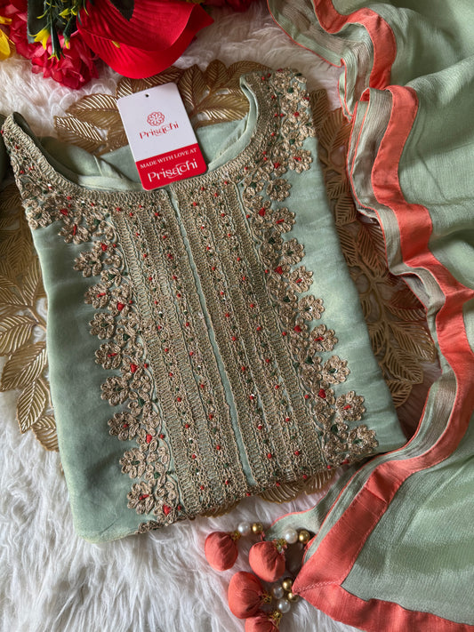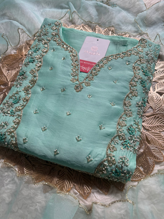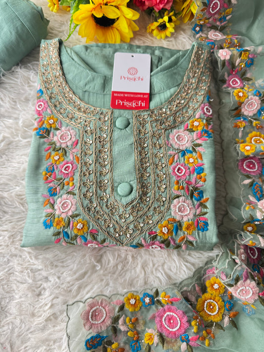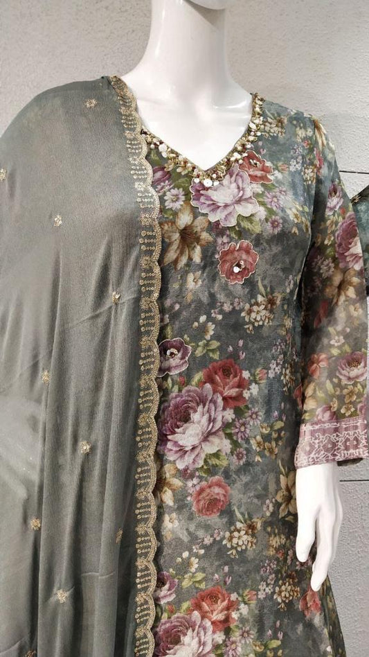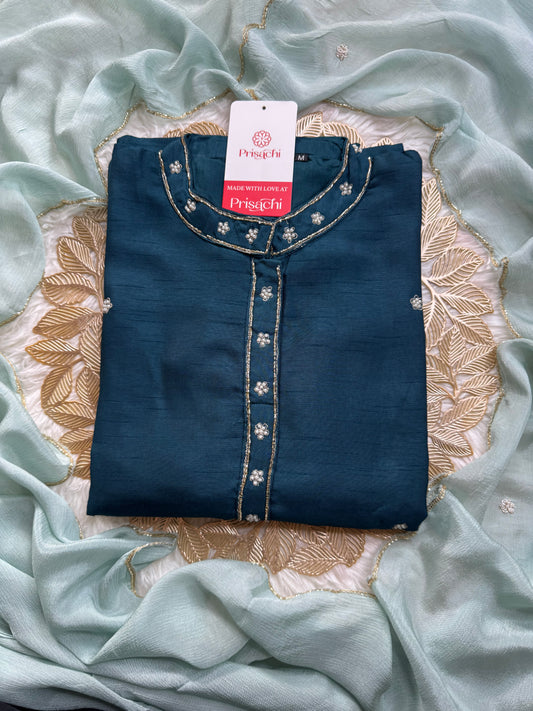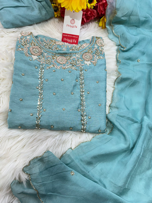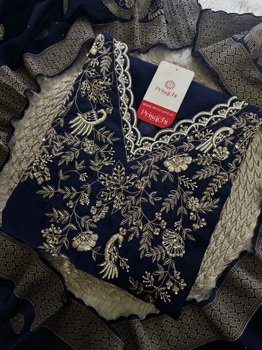 Blue Desinger Embroidered kurta Bottom with dupatta