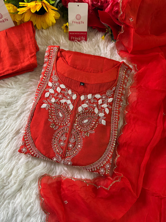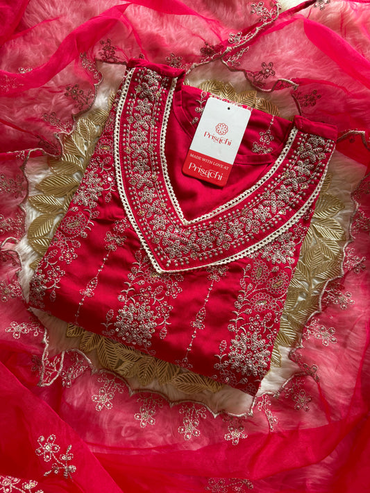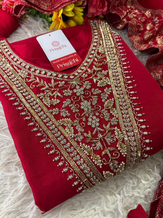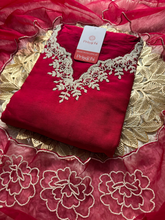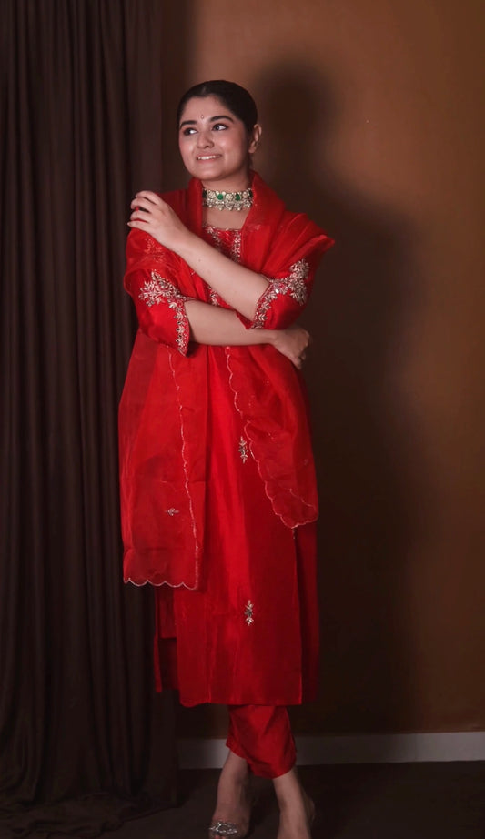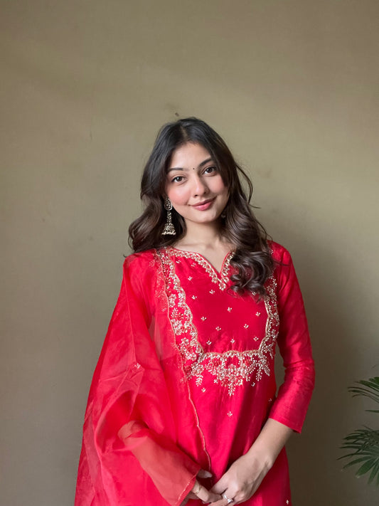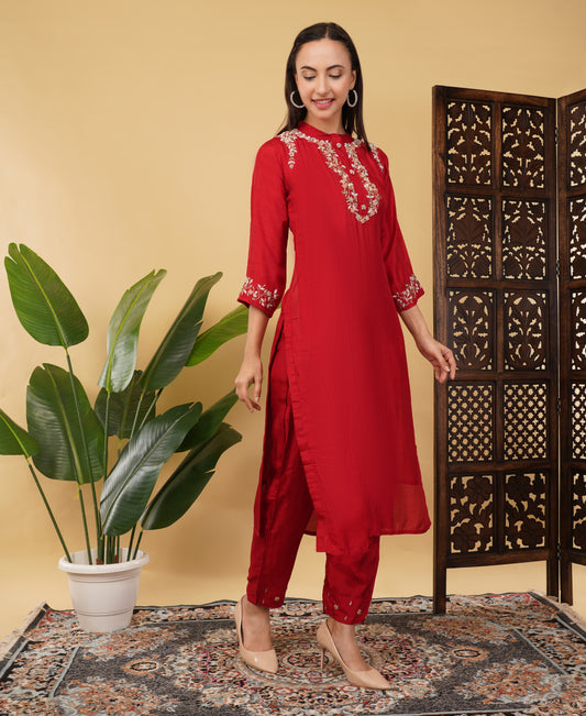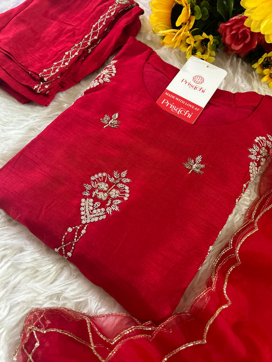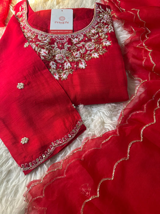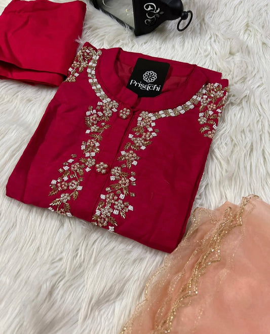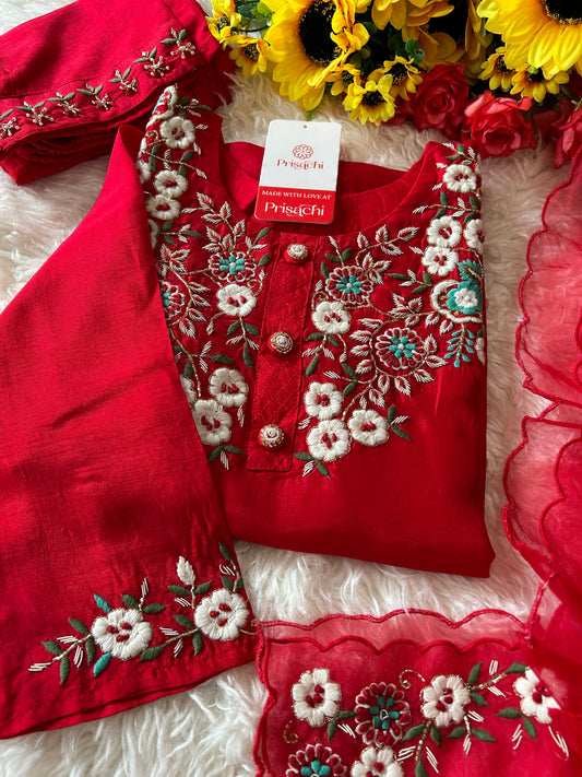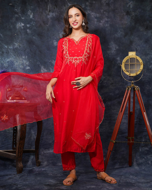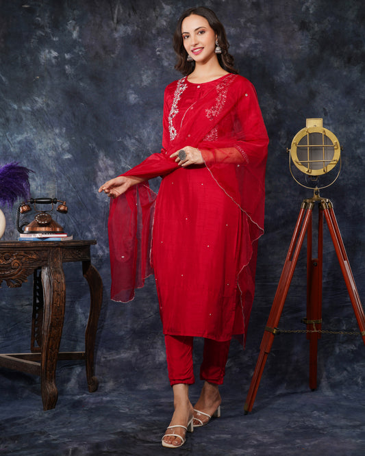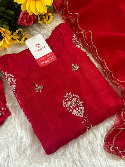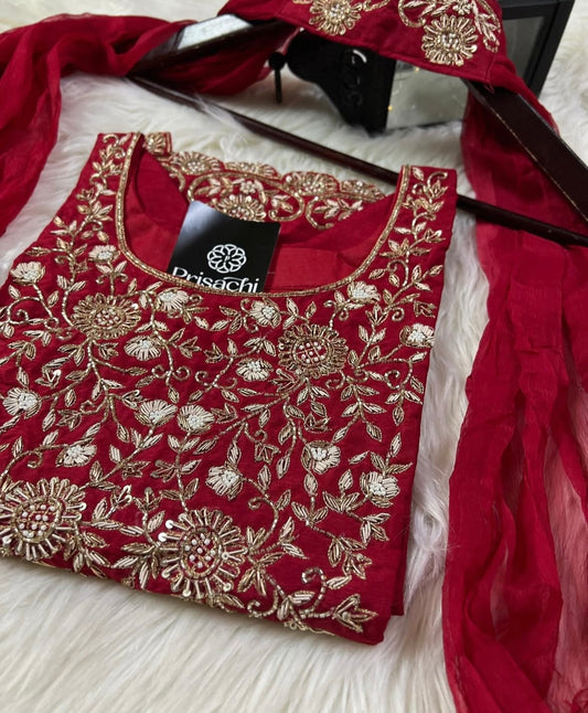 Prisachi Red embroidered kurta Pant with dupatta for Women