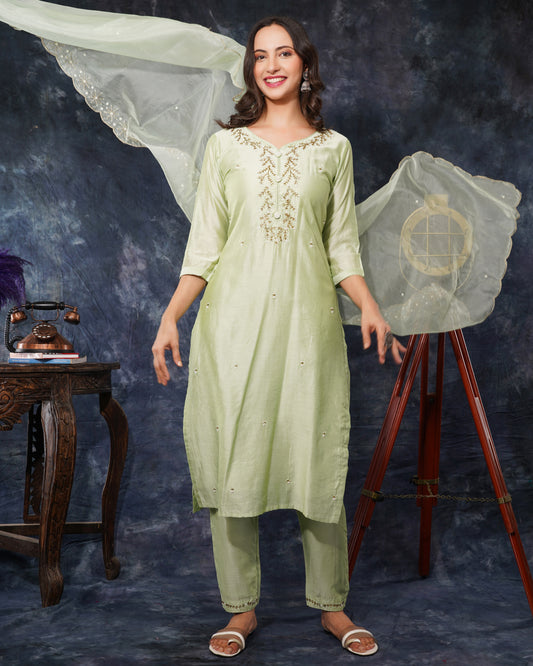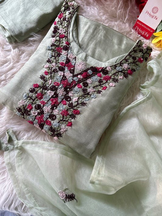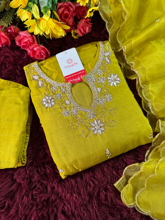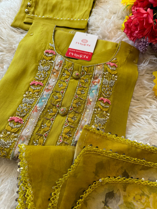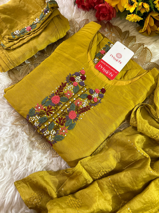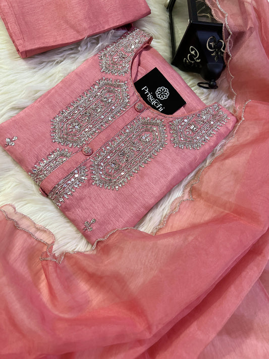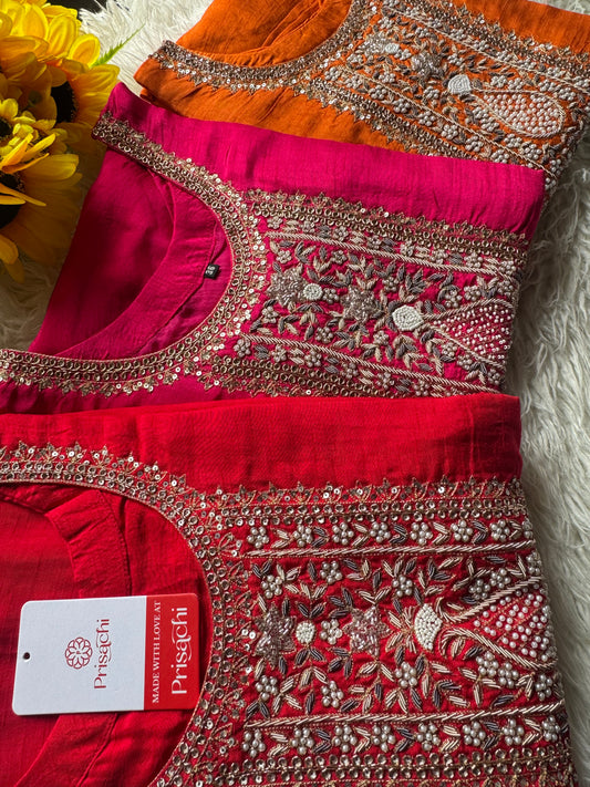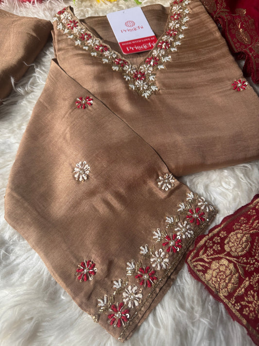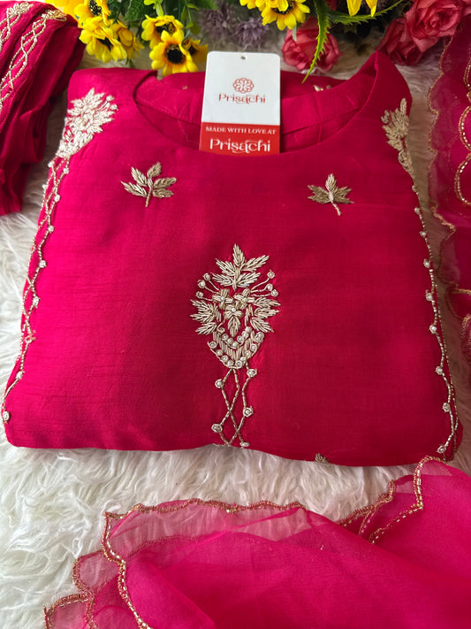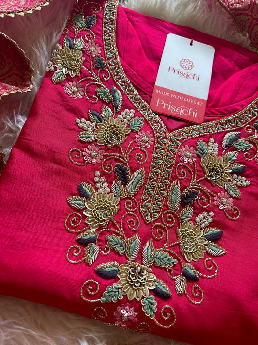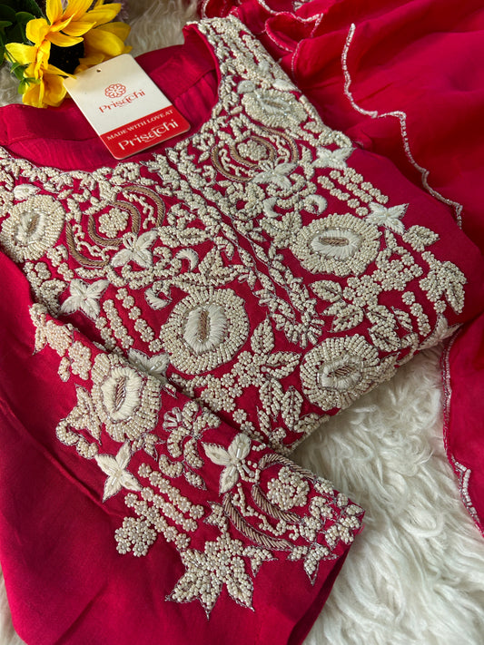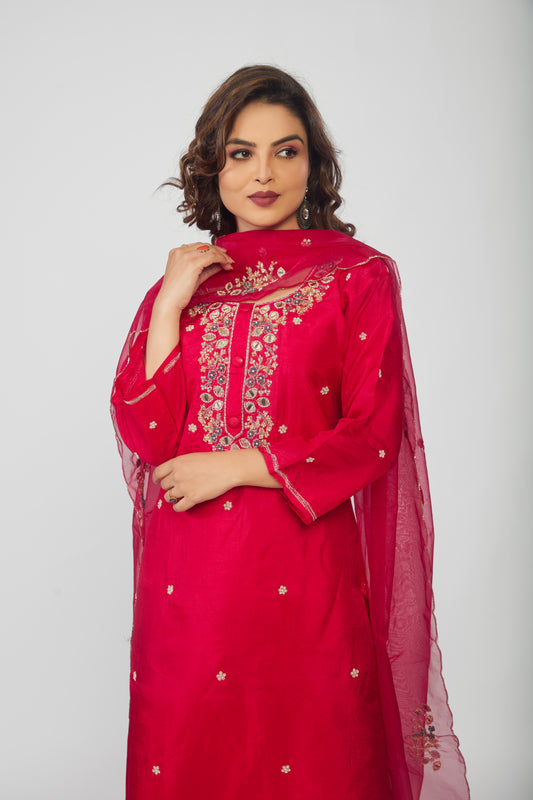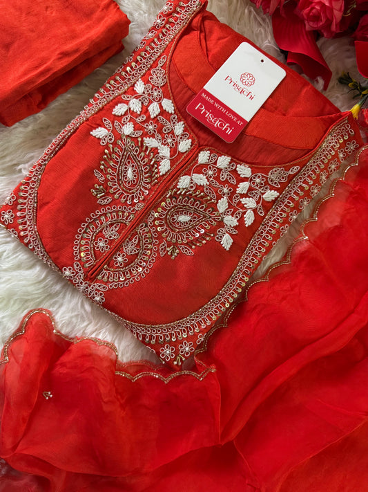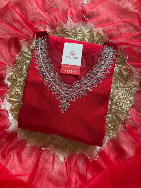 Prisachi Red embroidered kurta Pant with dupatta for Women