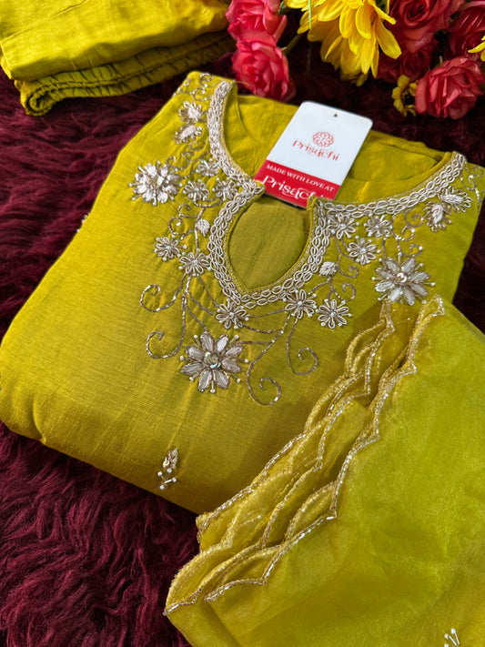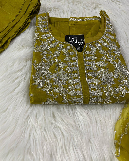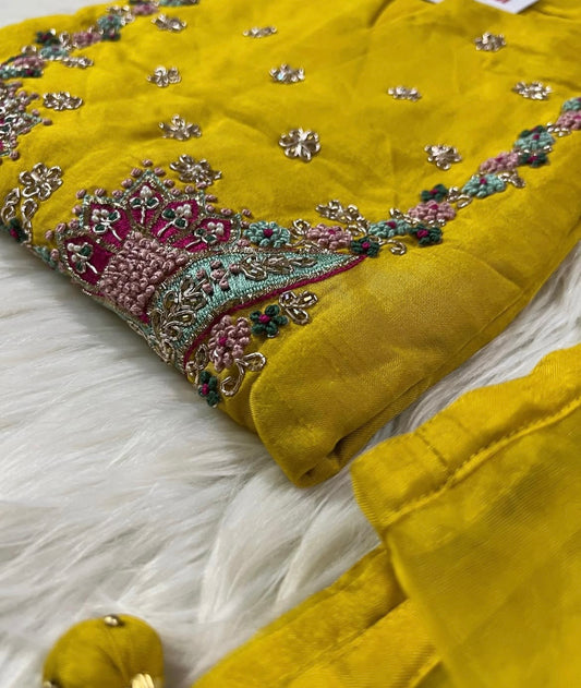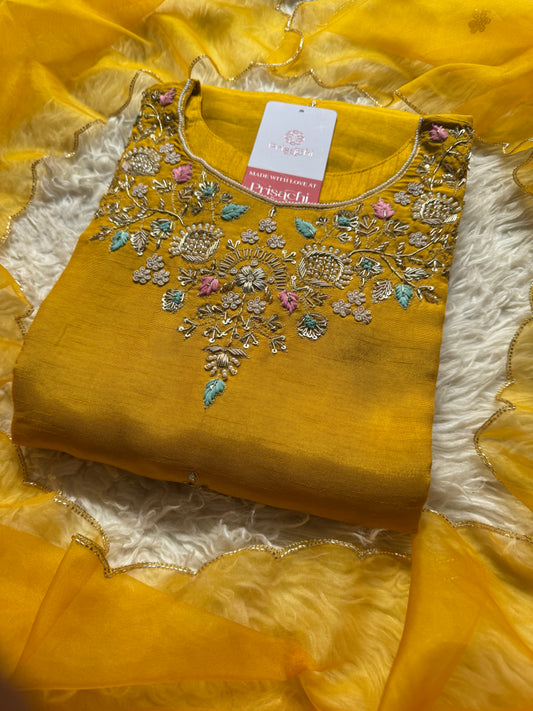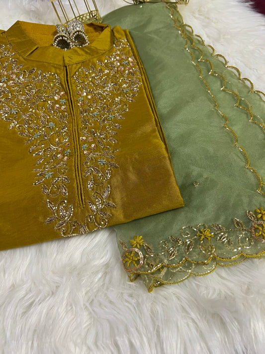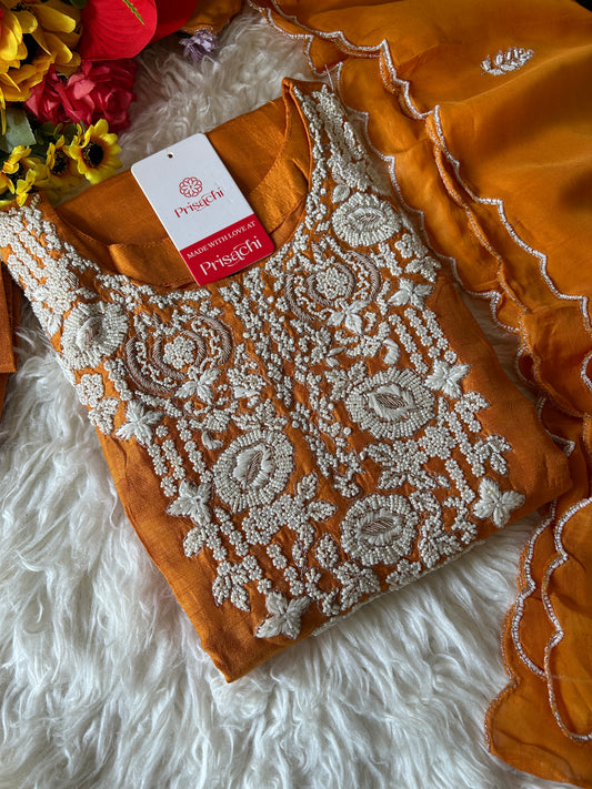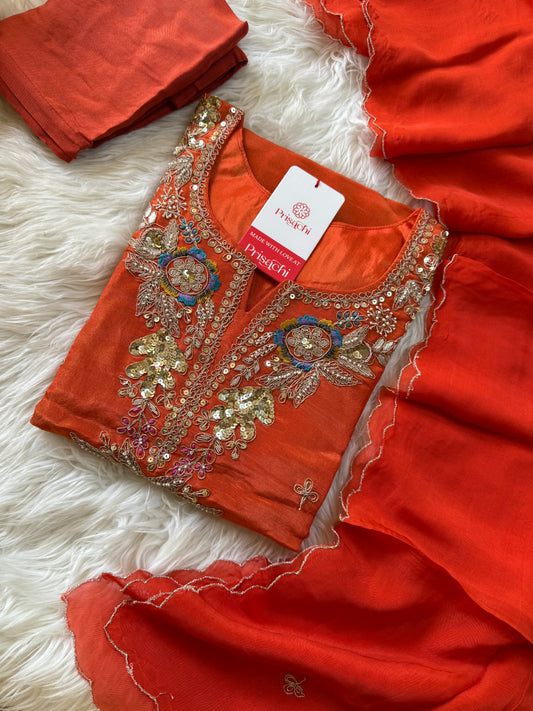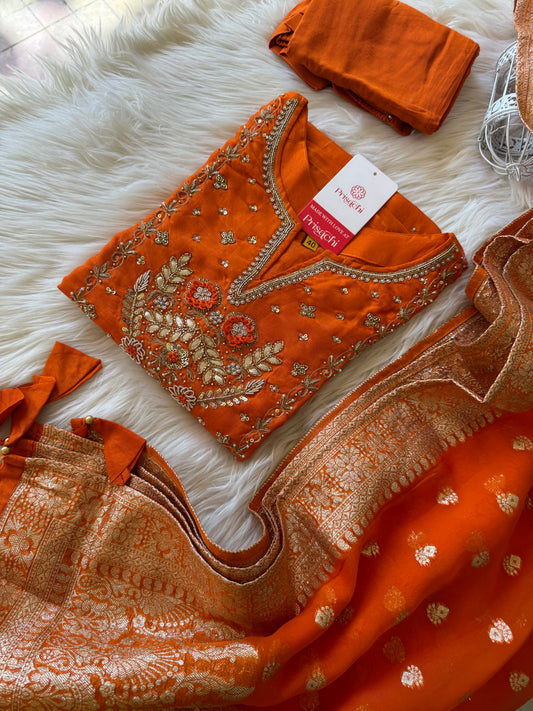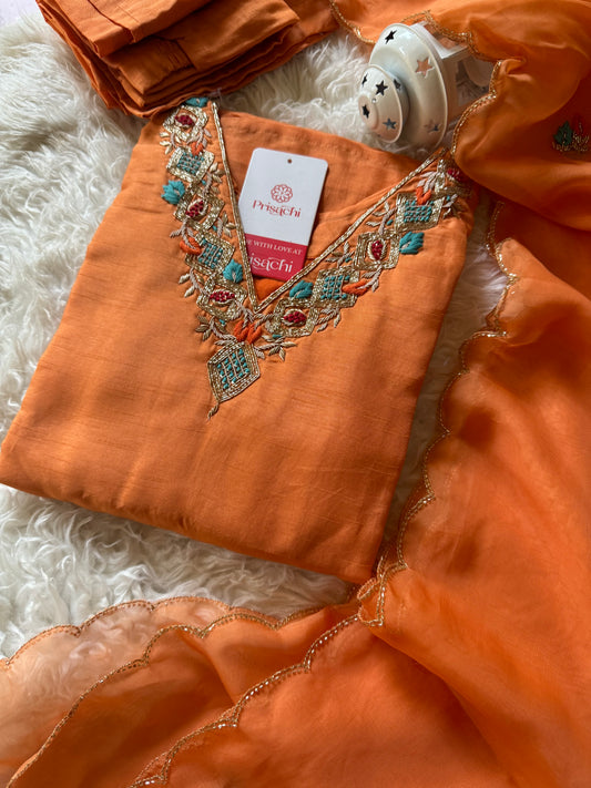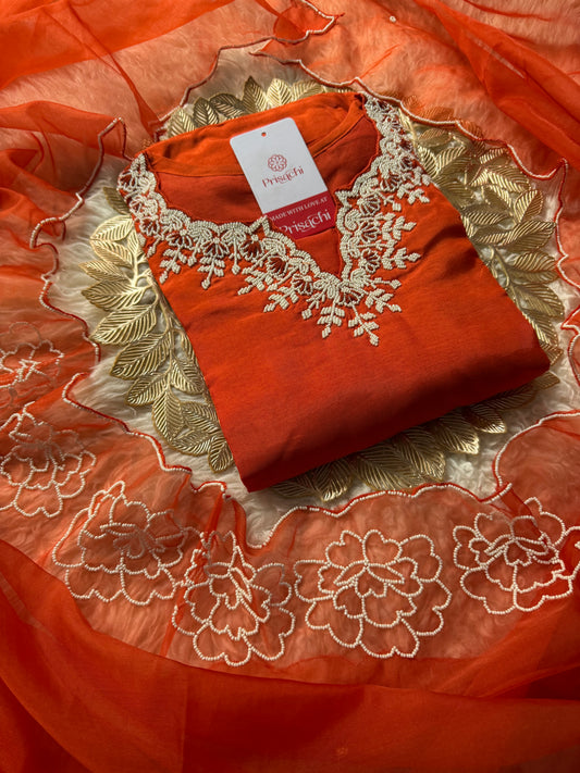 Designer Orange Embroidered Kurta bottom With Dupatta