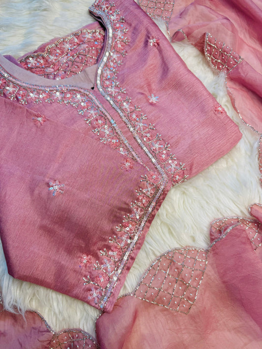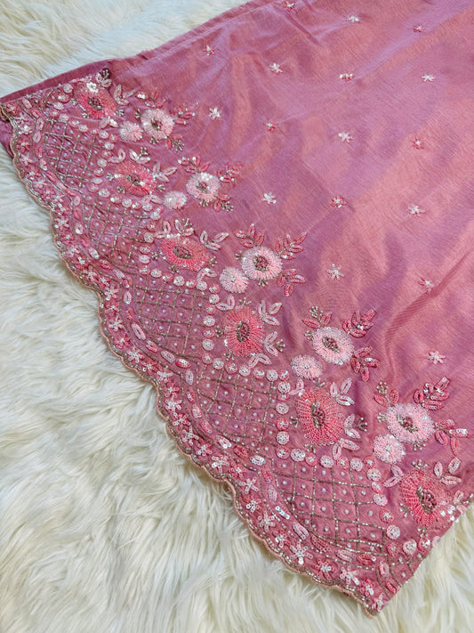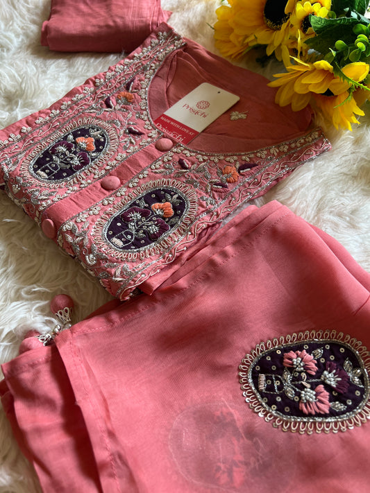 Baby Pink floral embroidered Alia cut Anarkali dress