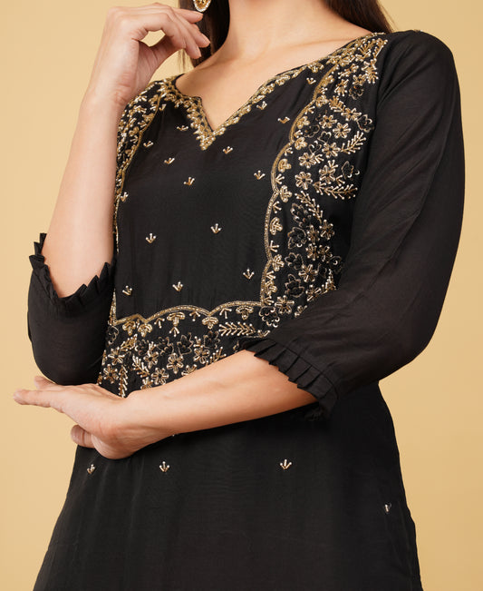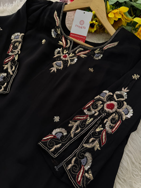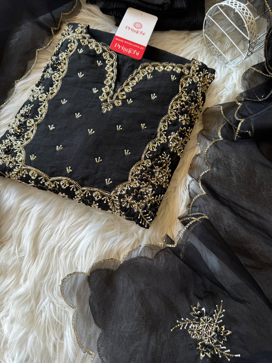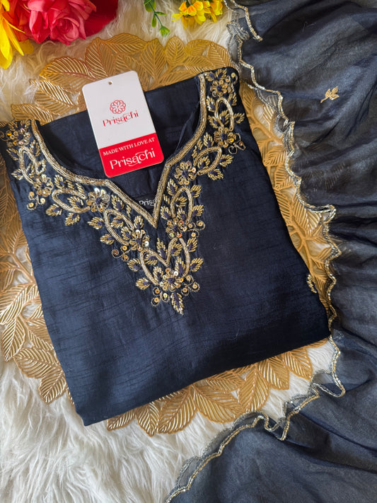 Prisachi Black Embroidered kurta bottom with dupatta with Zardosi work