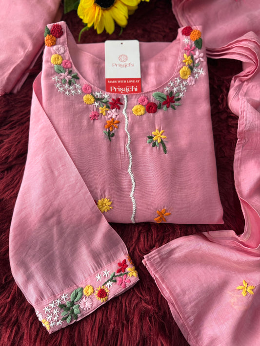 Maslin Designer Embroidered kurta set with dupatta
