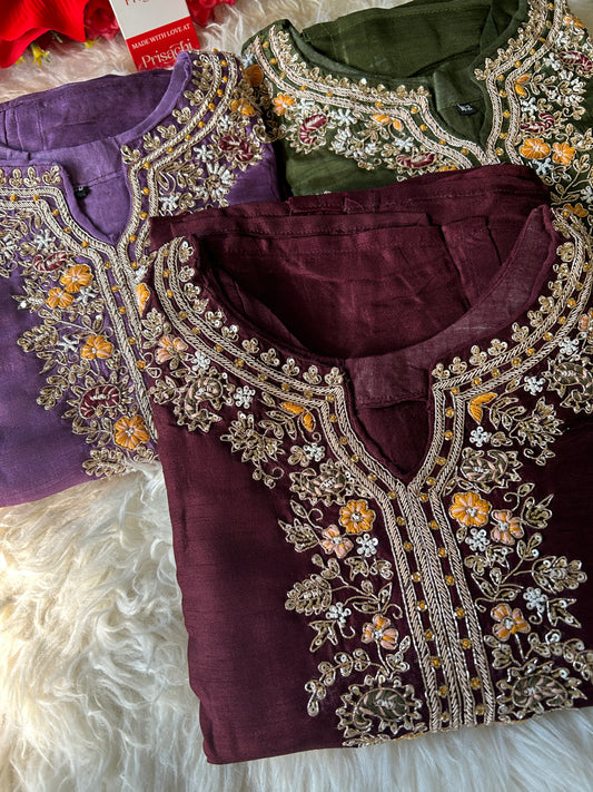 Purple Designer Embroidery Kurti pant with embroidered Work duptta