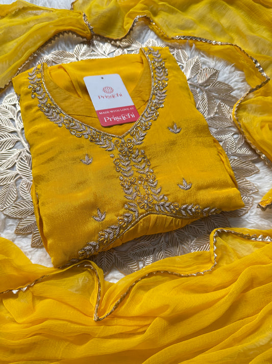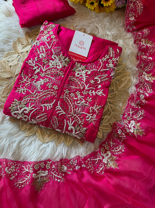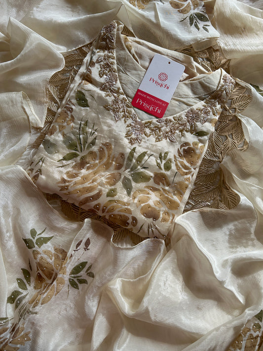 Pure Chinon silk kurta set with organza work dupatta