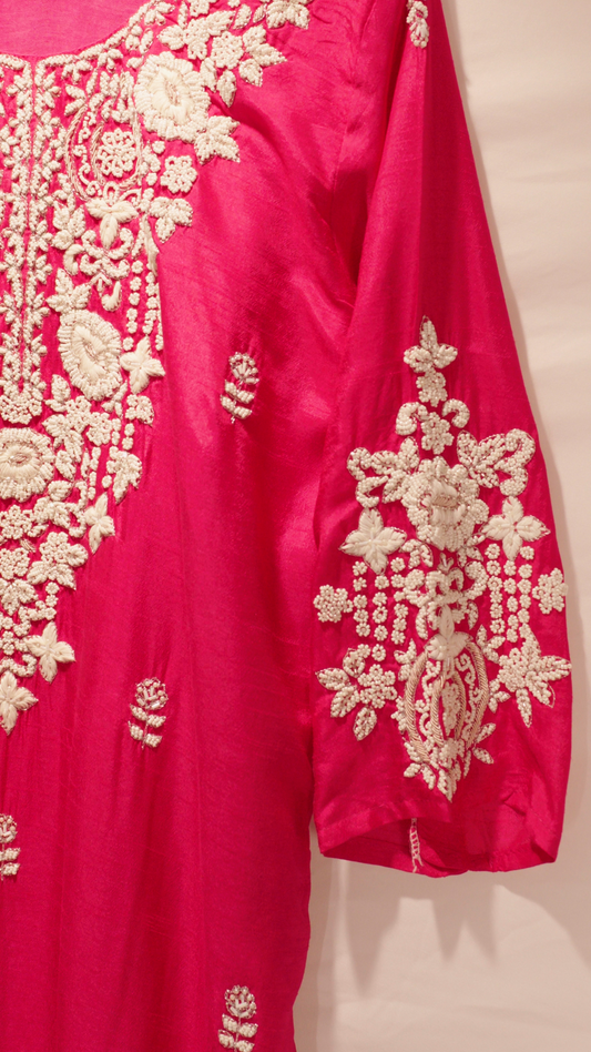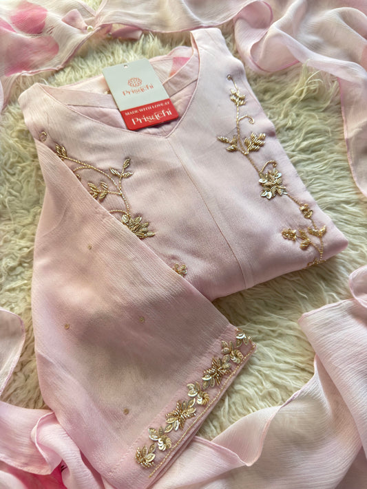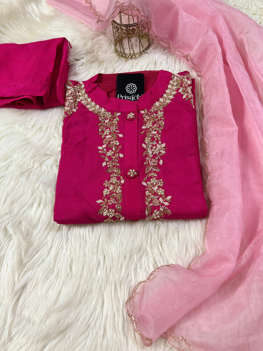 Pink Hand embroidered kurta set with dupatta
