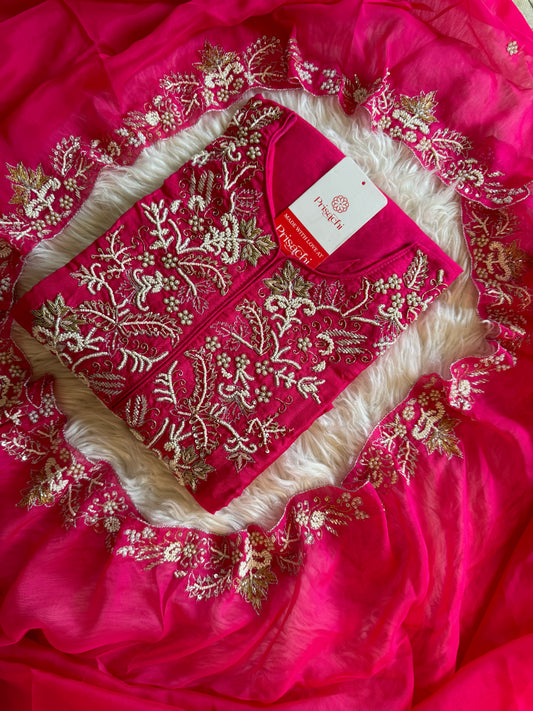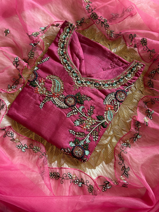 Pink Designer Embroidery Kurti pant with embroidered Work duptta