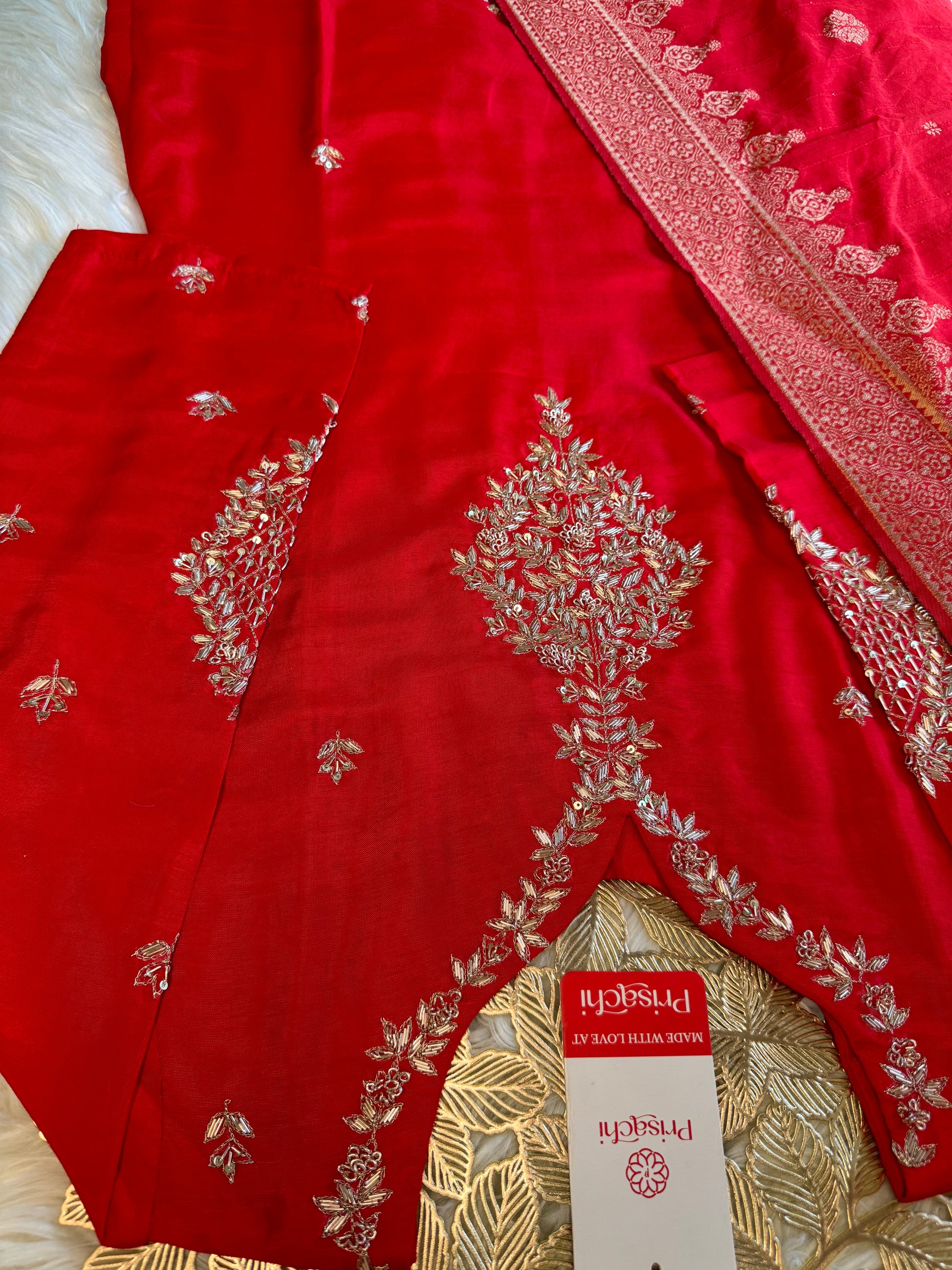 Dazzle in our Pink Designer Kurti Set adorned with Zardosi Work. This ensemble exudes opulence with its intricate detailing and vibrant pink hue. The kurti features exquisite zardosi embroidery, adding a touch of royal elegance. Perfect for special occasions, it promises to captivate attention and leave a lasting impression of sophistication.