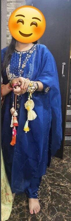 Wear this Blue Embroidered Kurta Set with Dupatta to look effortlessly elegant. This charming set perfectly combines history and innovation with its detailed needlework on a calm blue canvas. The ensemble, which includes a dupatta, bottoms, and a kurta, is a tribute to classic elegance and sophistication.