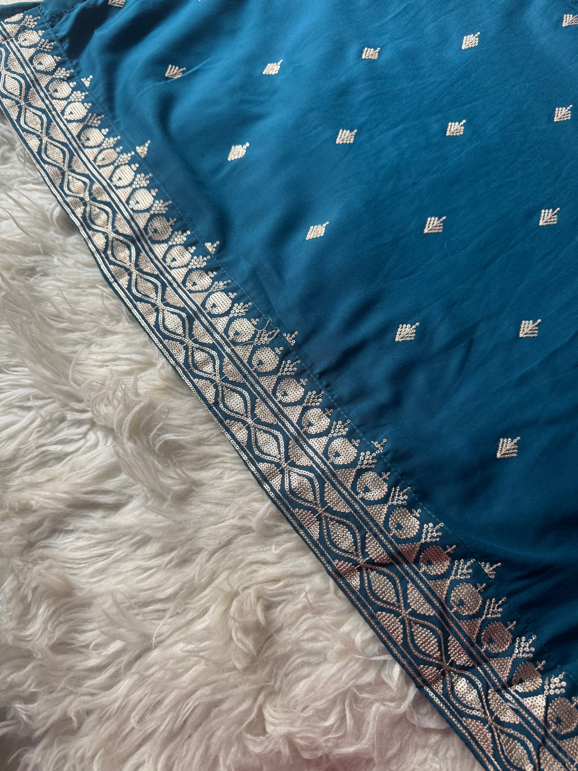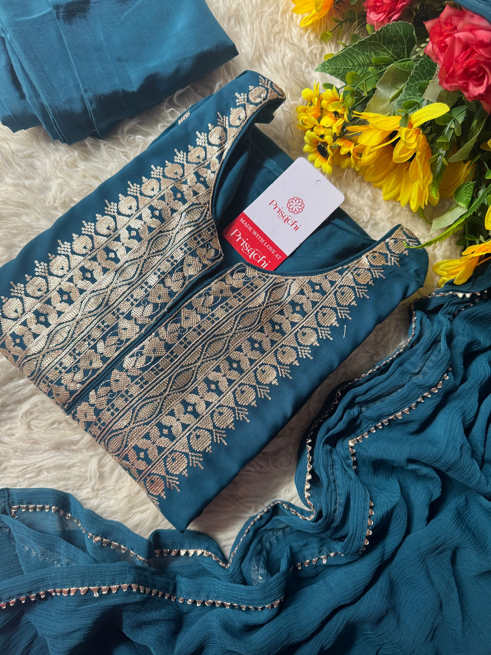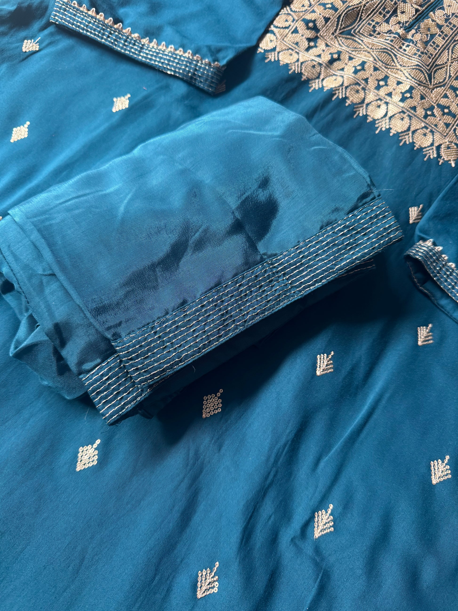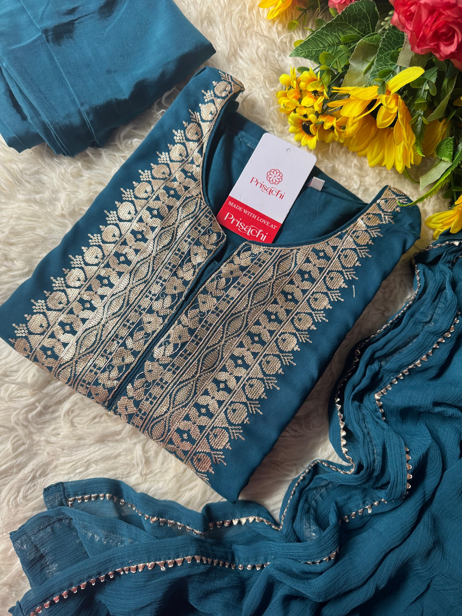 Our Kurta Set with Dupatta will have you embracing vivid sophistication. The deep crimson color and elaborate embroidery on this outfit exude elegance. It's a versatile option for any event when paired with a coordinating dupatta, providing the ideal fusion of classic charm and modern flair for the style-conscious.