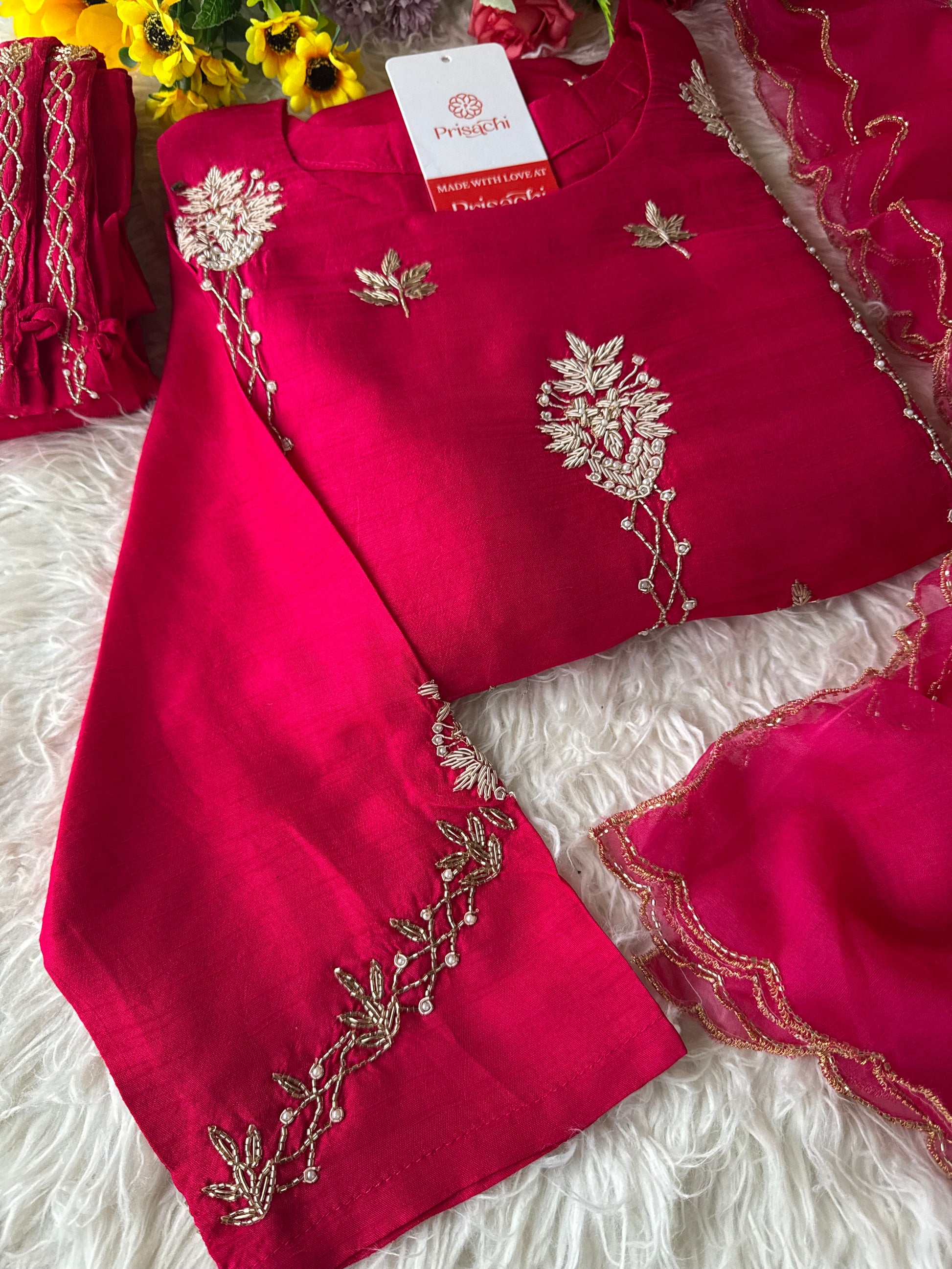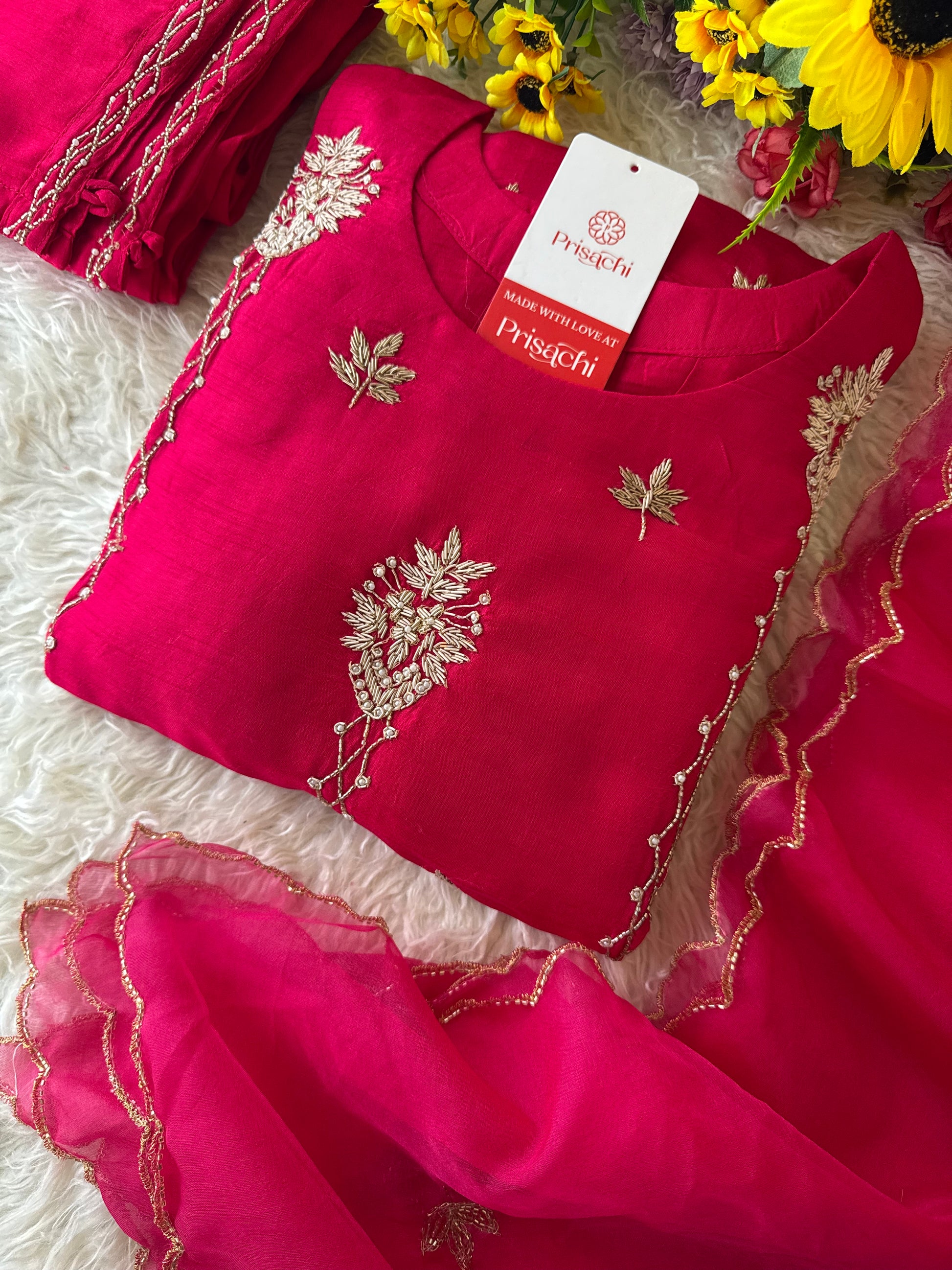 Our Red Embroidered Kurta Set with Dupatta will have you embracing vivid sophistication. The deep crimson color and elaborate embroidery on this outfit exude elegance. It's a versatile option for any event when paired with a coordinating dupatta, providing the ideal fusion of classic charm and modern flair for the style-conscious.
