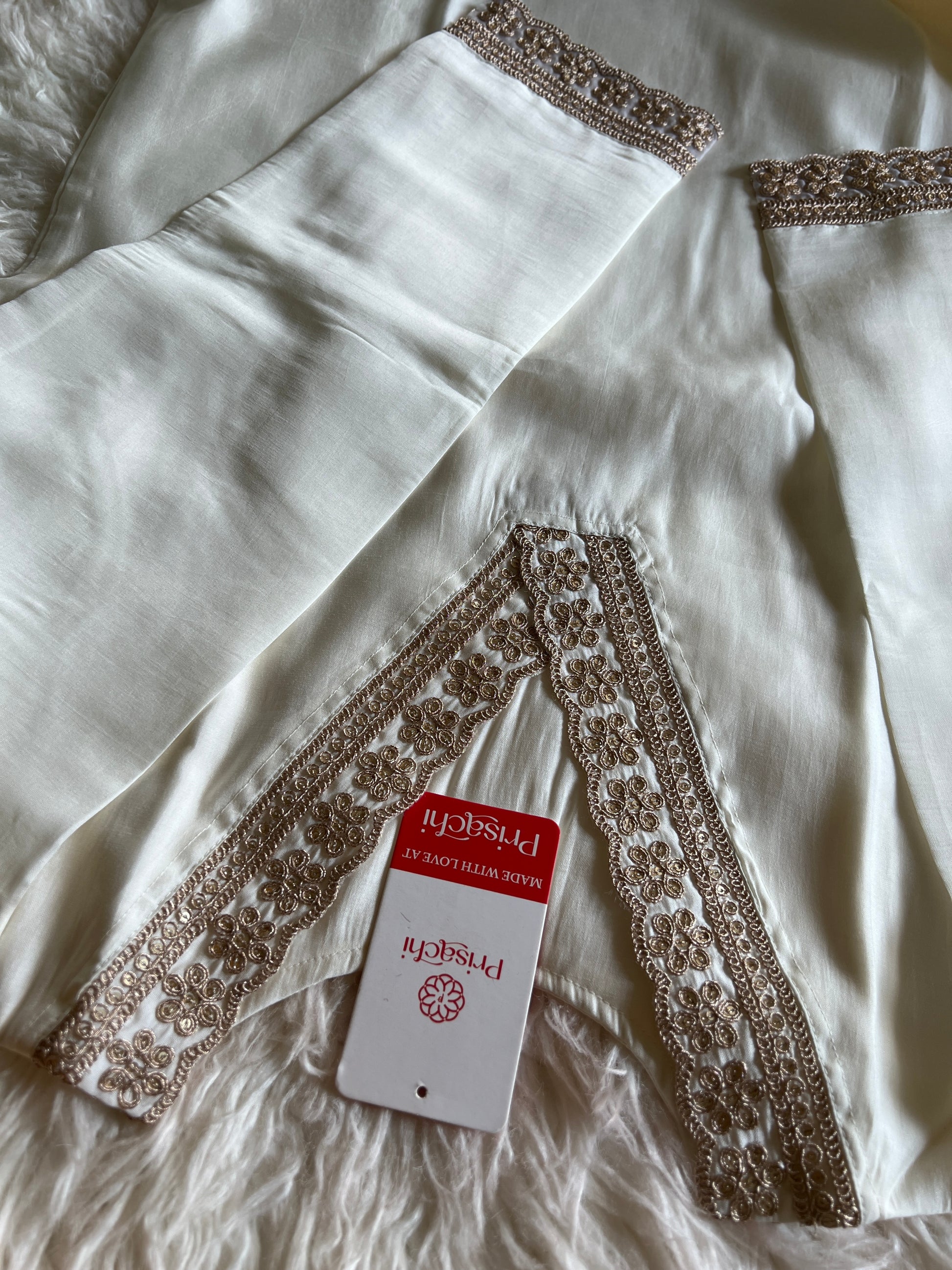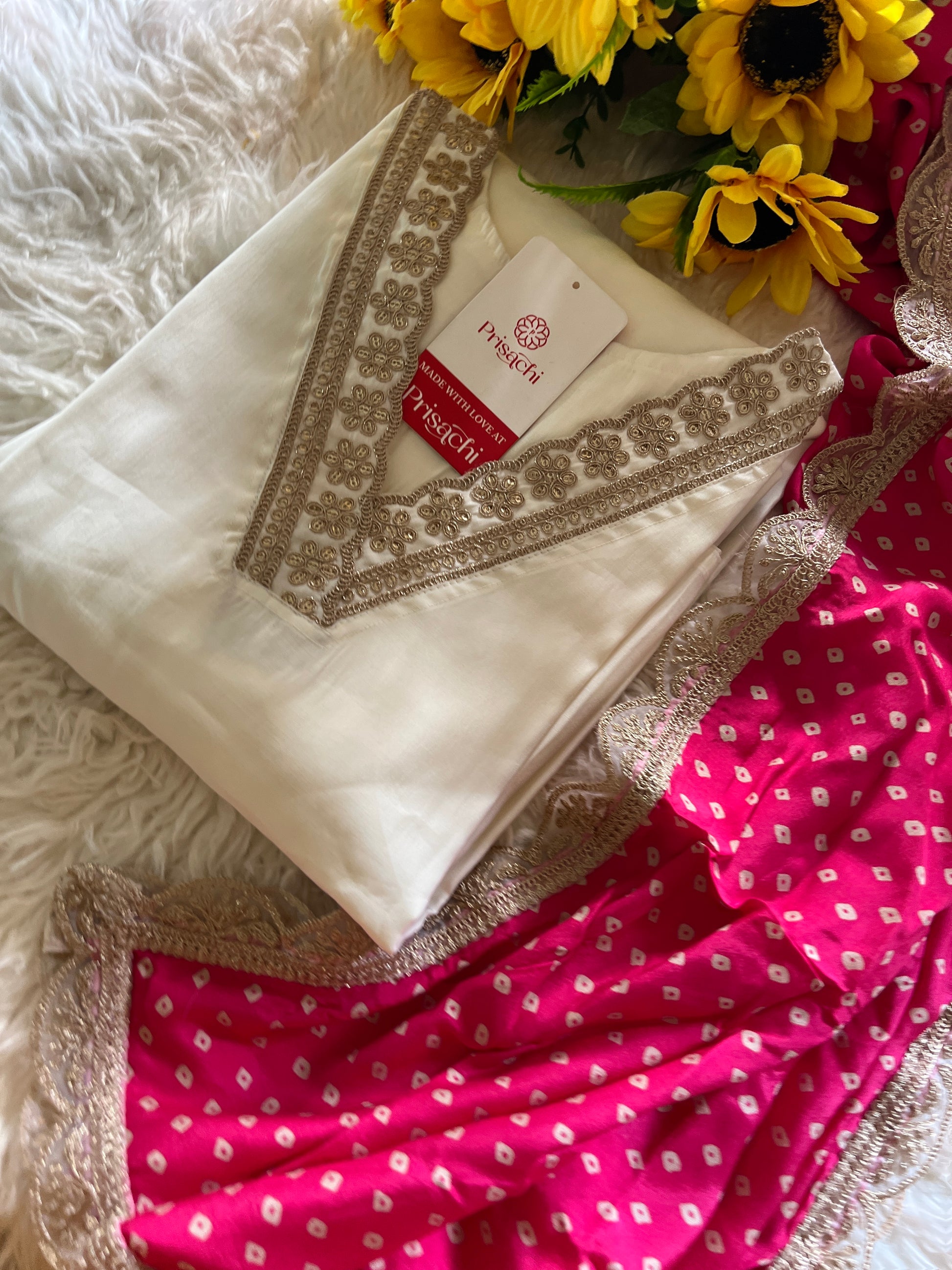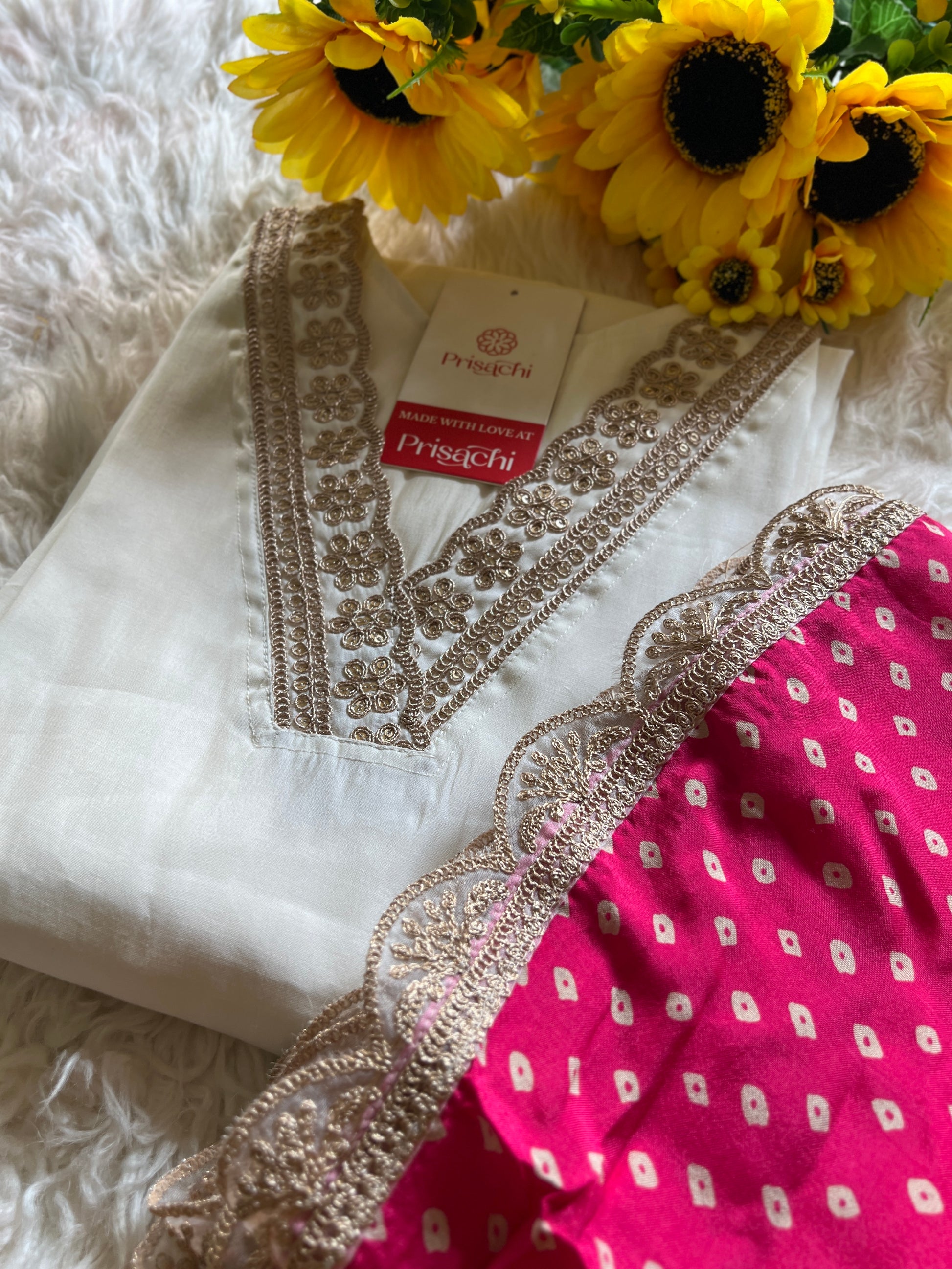 Off White Lilac silk kurta set with Mary Pink dupatta
