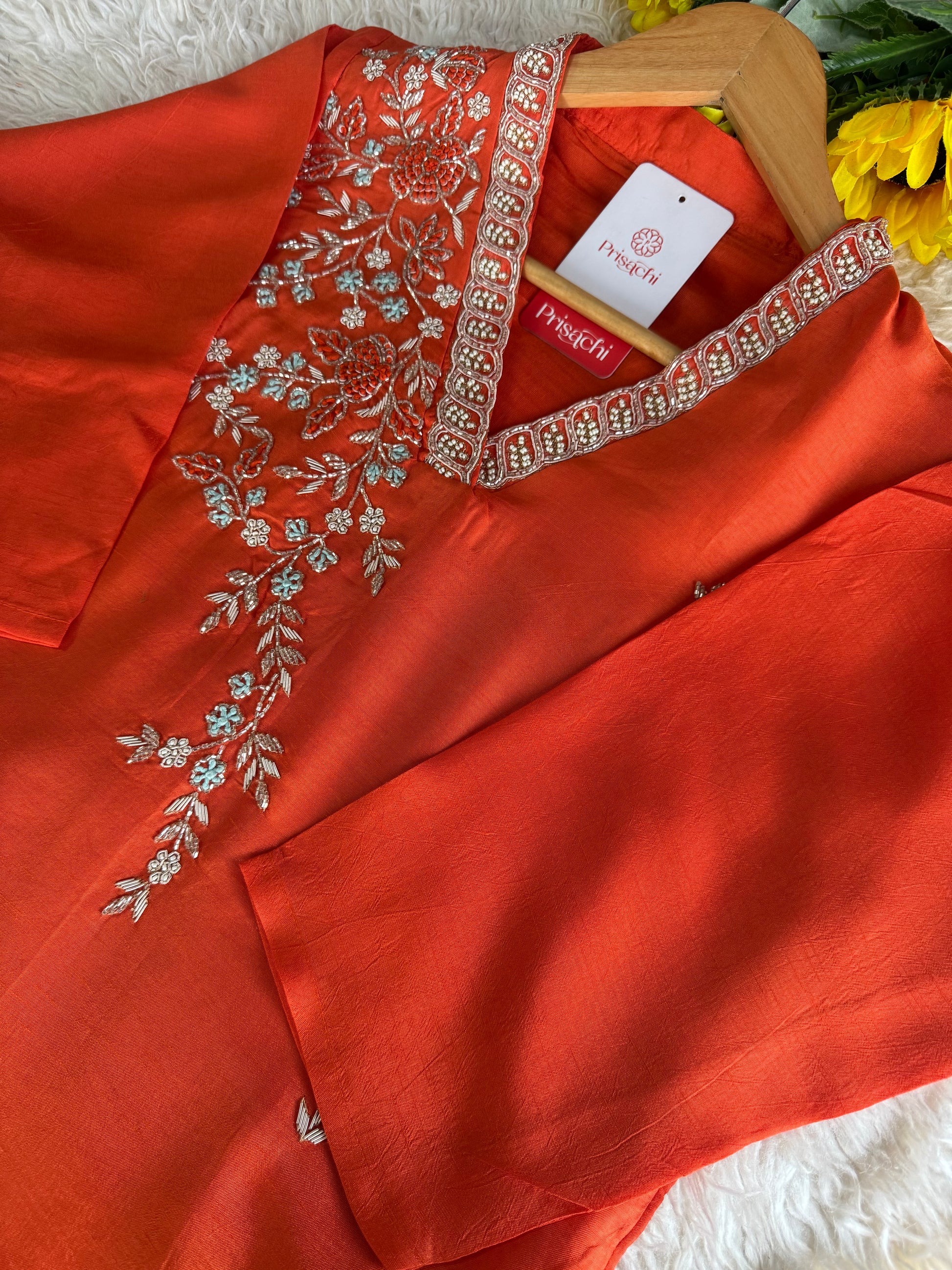 Elevate your ethnic and casual wardrobe with this Orange Women’s Embroidered Kurta Set, thoughtfully designed for elegance and comfort. Crafted from premium-quality fabric, this 3-piece ensemble features intricate embroidery that adds a touch of sophistication. Each set comes with a matching pant and dupatta, making it perfect for festive celebrations, weddings, and special occasions.