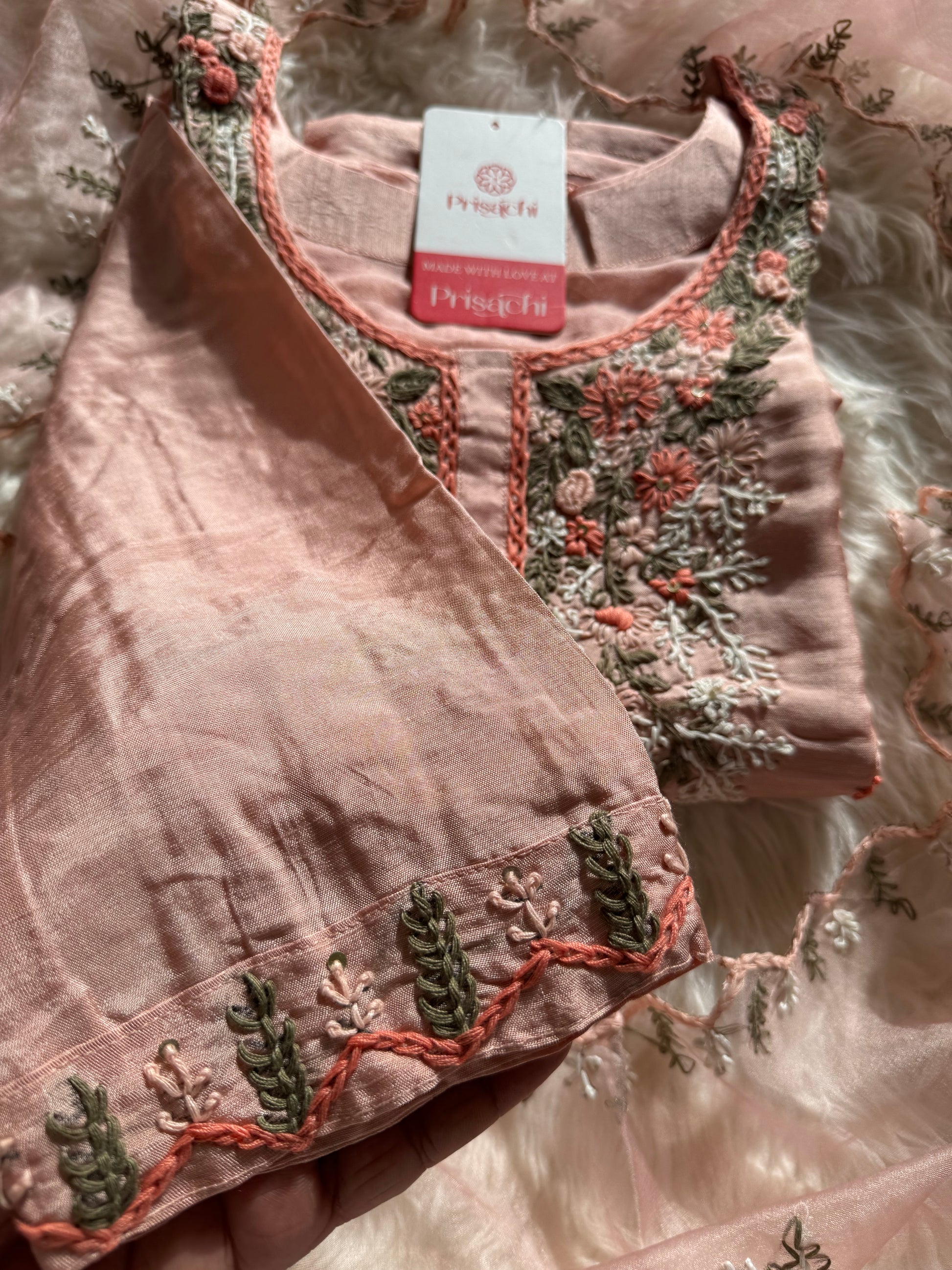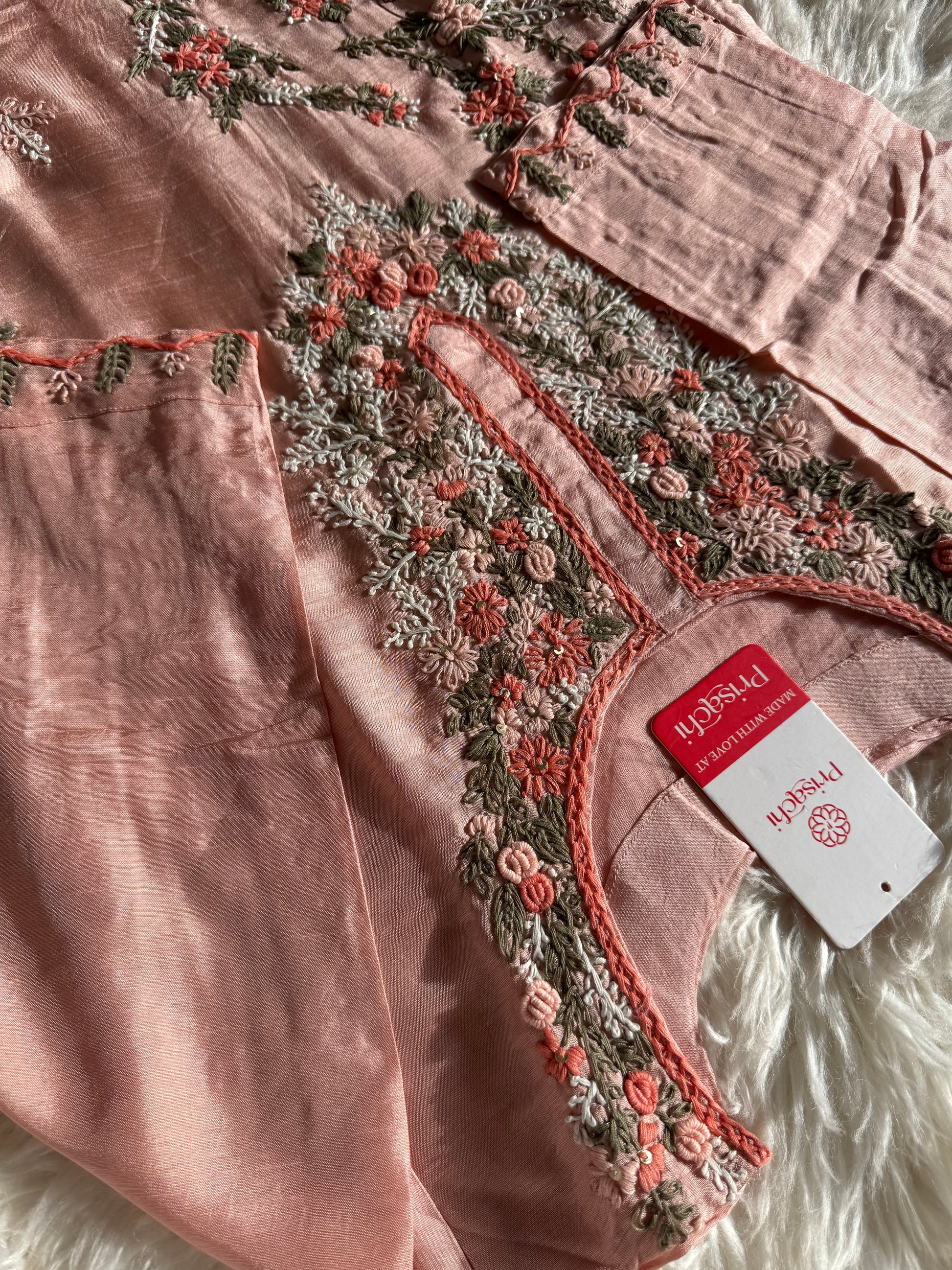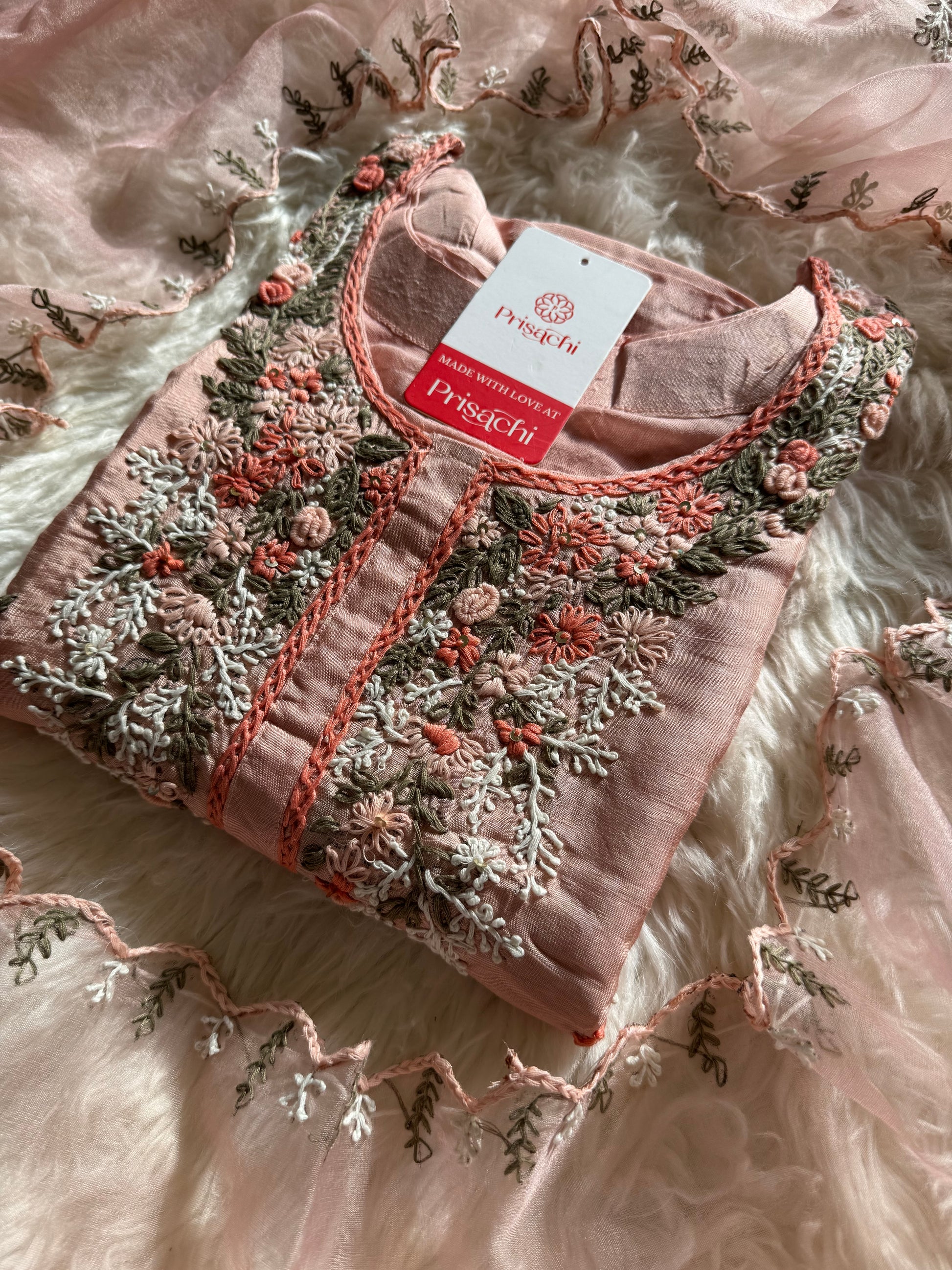 Our Peach Embroidered Kurta Set with Dupatta will enhance your ethnic look. The elegant and charming color of the soothing peach, which is embellished with detailed embroidery. This set, which consists of a kurta, bottoms, and dupatta, is a stylish and adaptable option for any formal event or festive gathering.