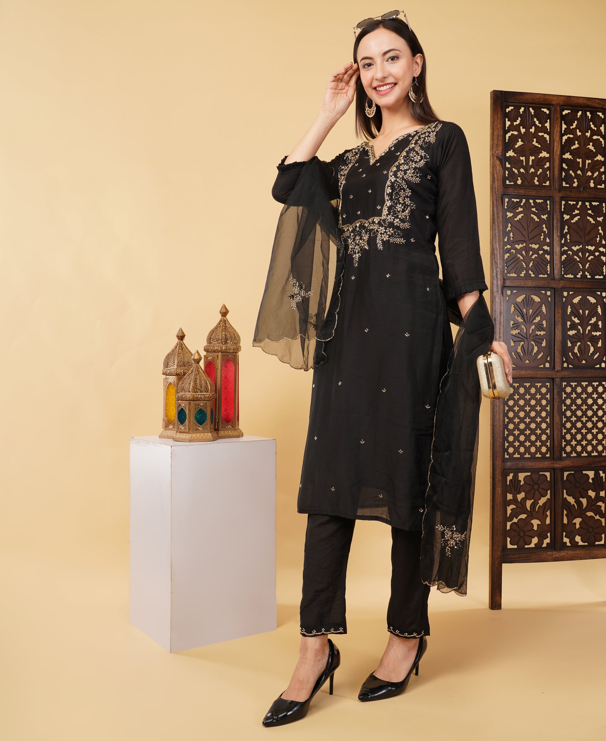 Prisachi Black Embroidered kurta bottom with dupatta with Zardosi work