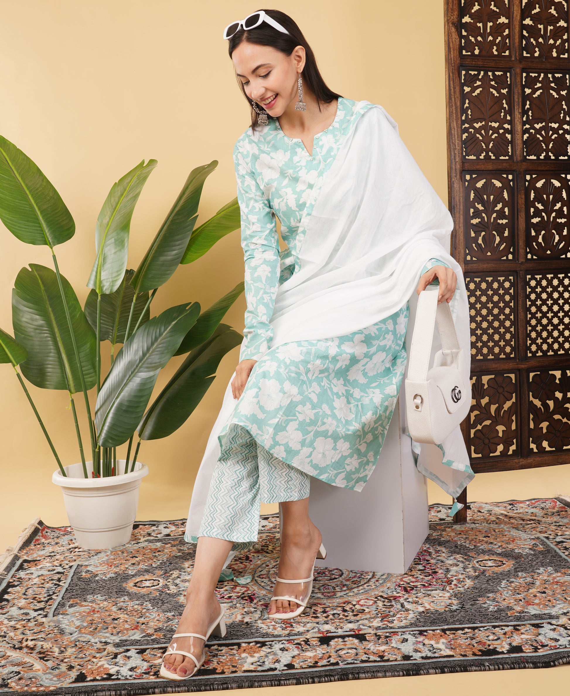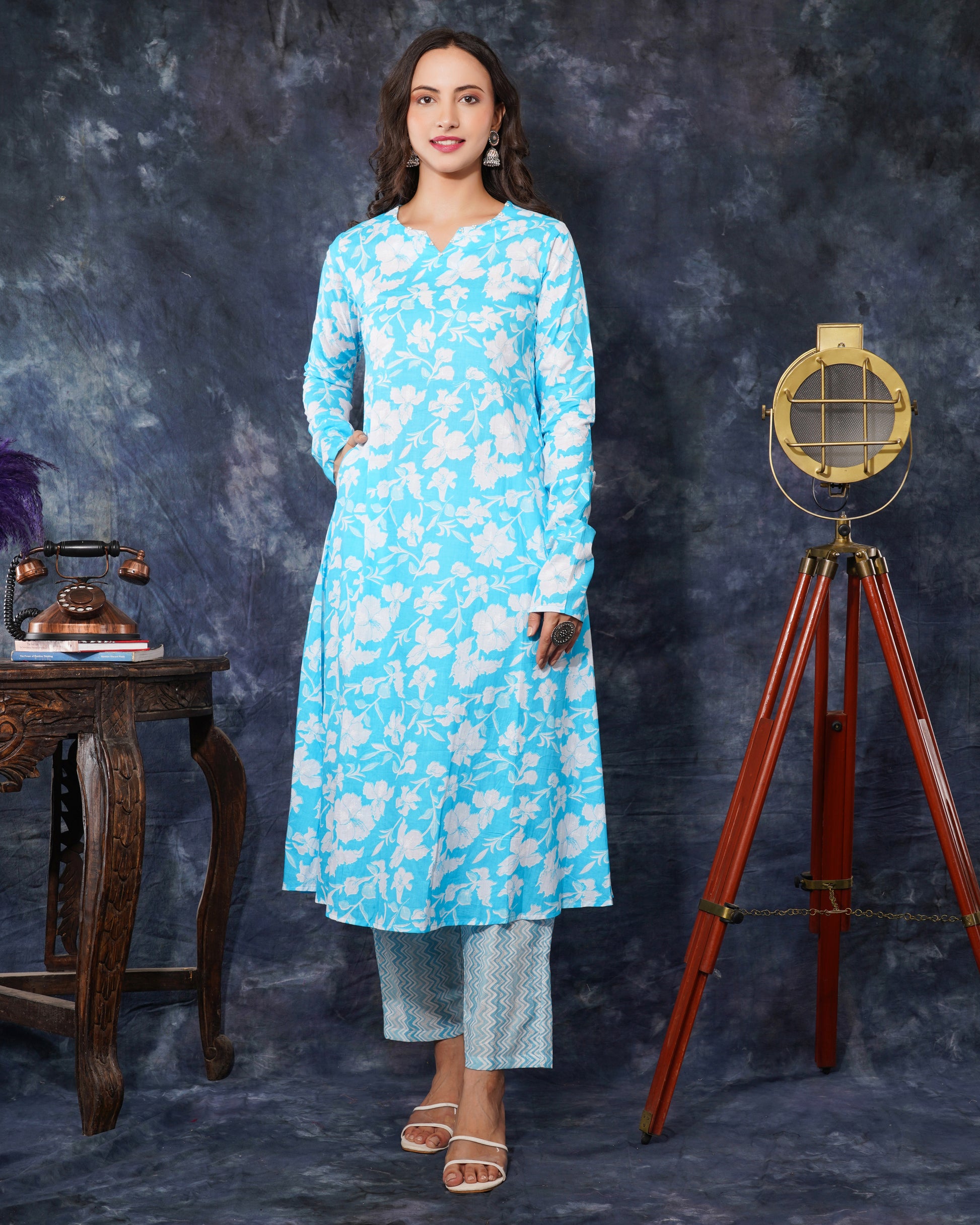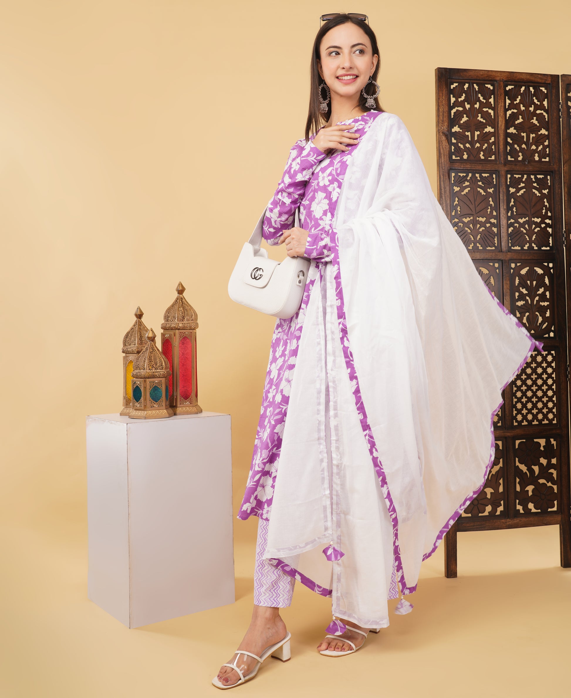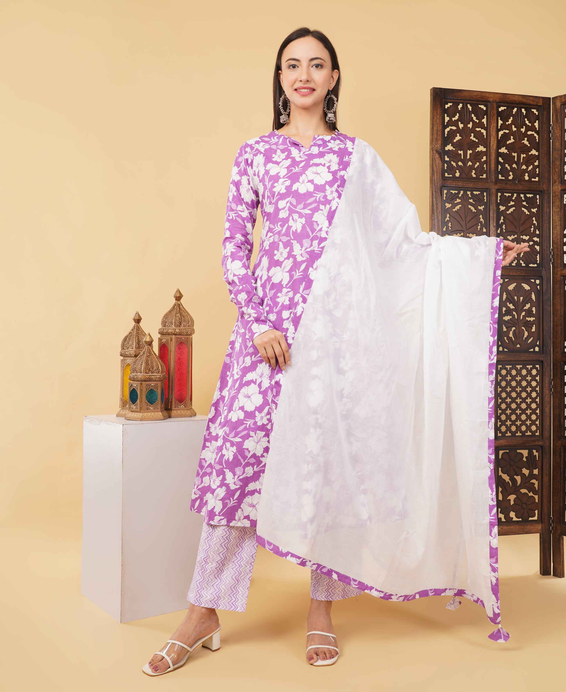 Step into summer in style with this beautiful cotton A-line Kurti set from PriSachi. Crafted from soft, breathable cotton, the kurta features a subtle print, full sleeves, and a hand-finished chunari touch for a hint of tradition. Designed with pockets on both sides for added convenience, it comes paired with a comfortable matching pant and a lightweight dupatta adorned with delicate tassels.