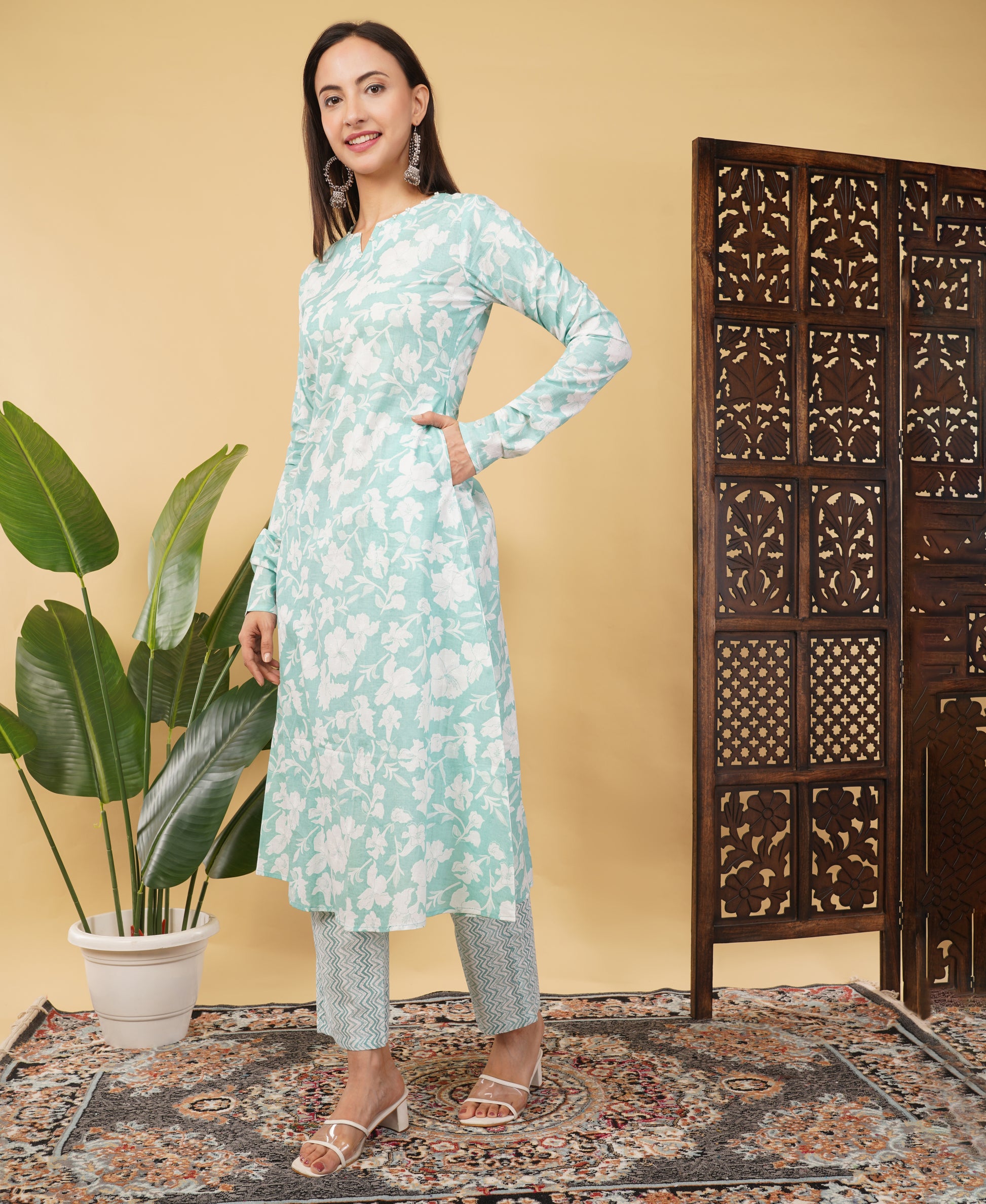 Prisachi Cotton A-line Kurti with pockets, comfy pant, and dupatta for Women