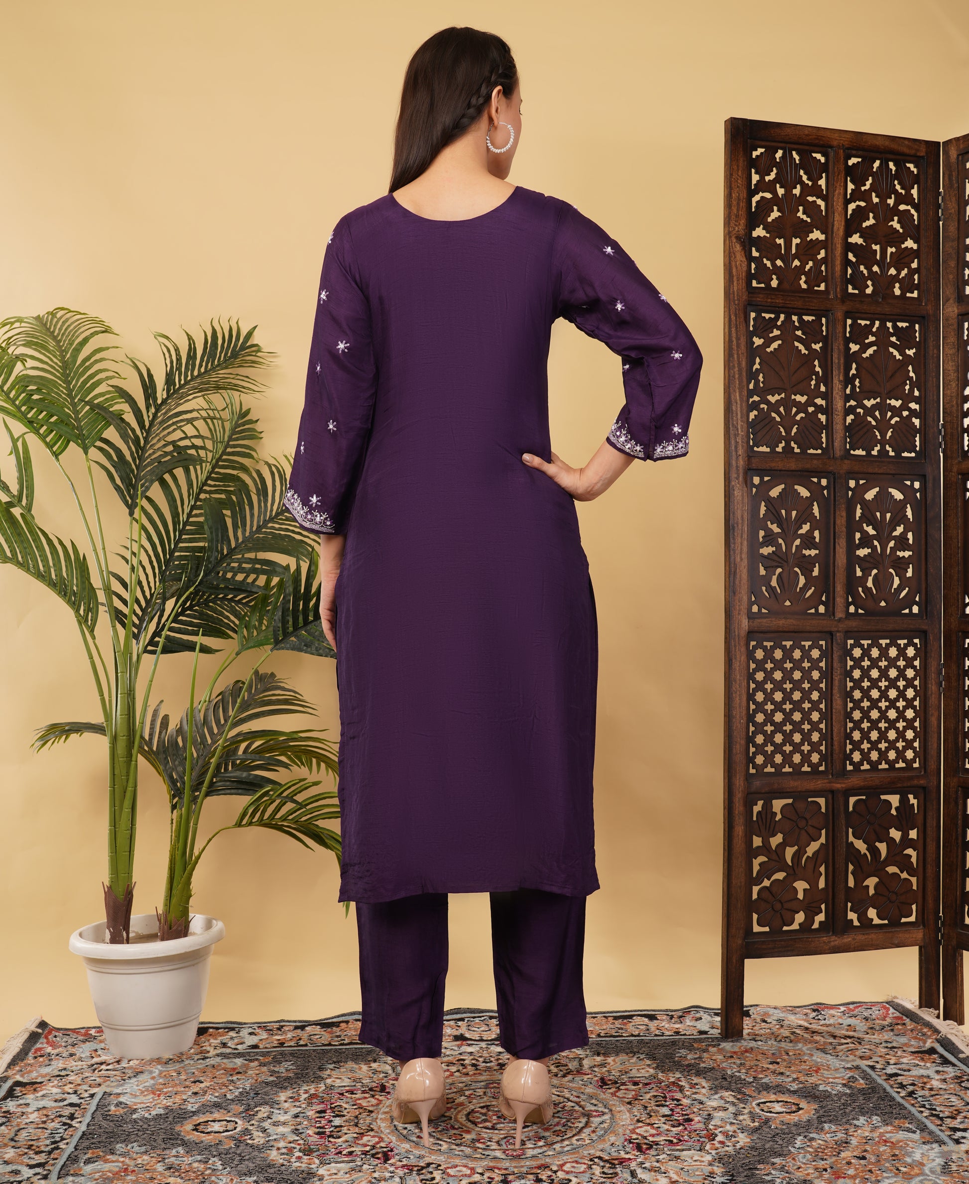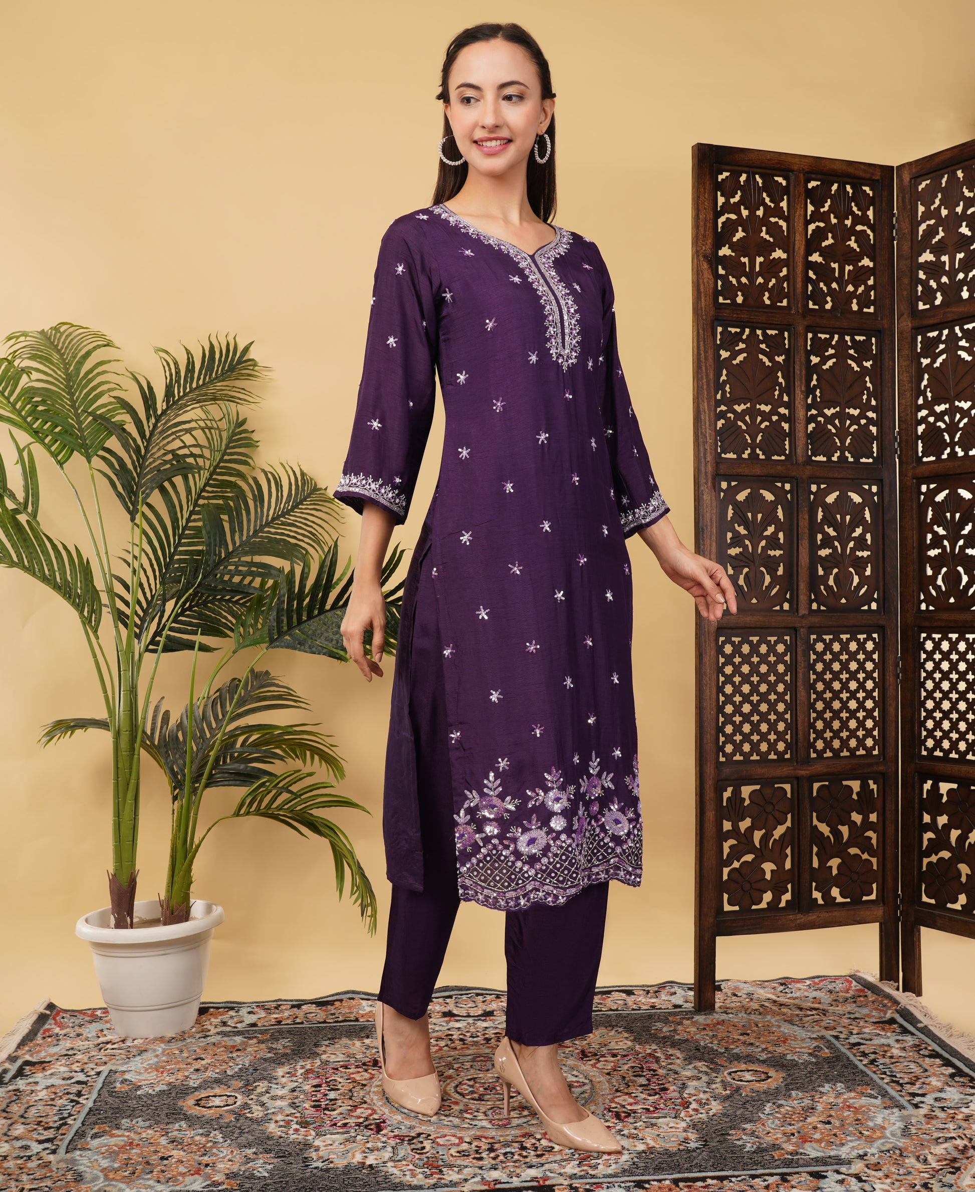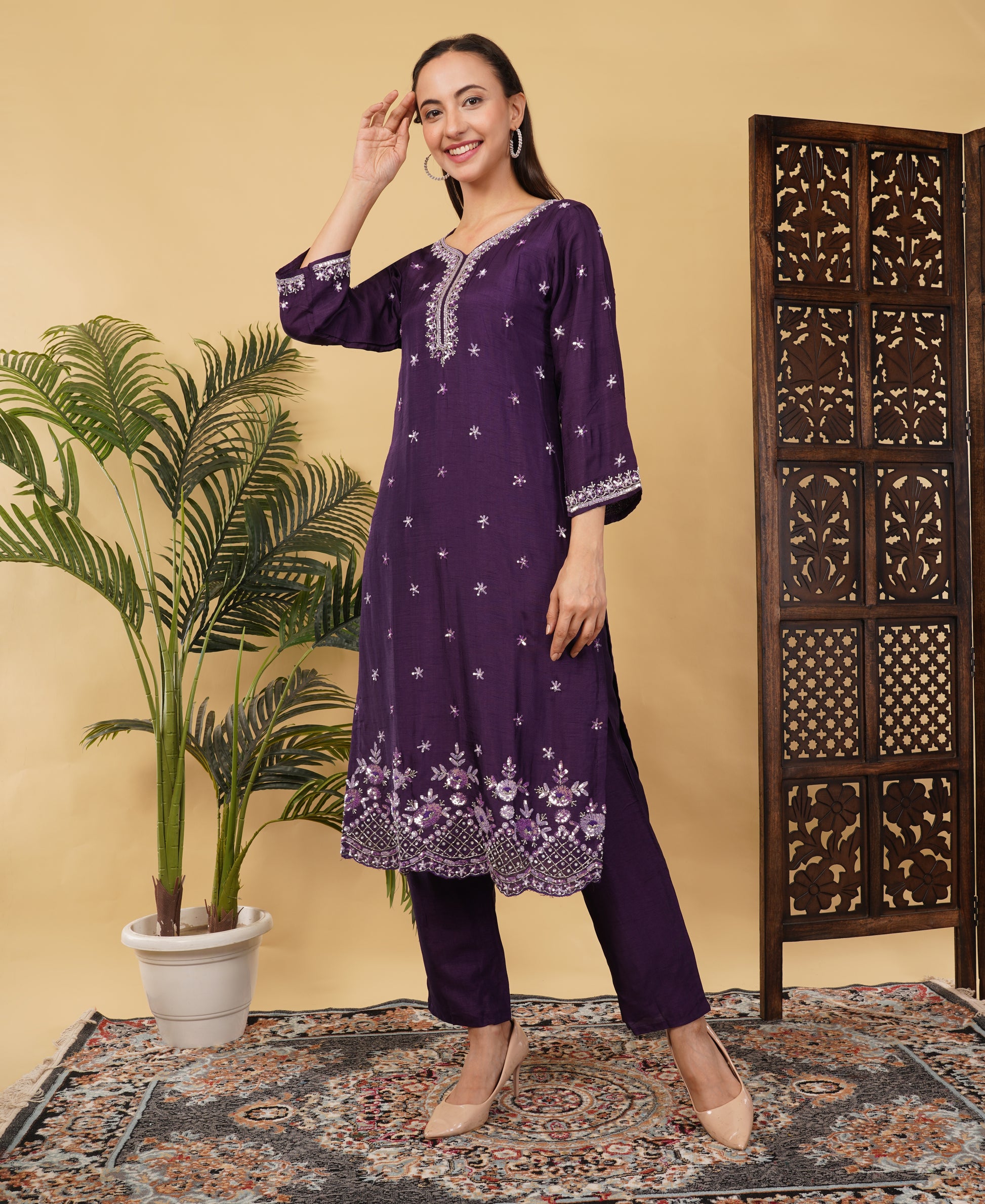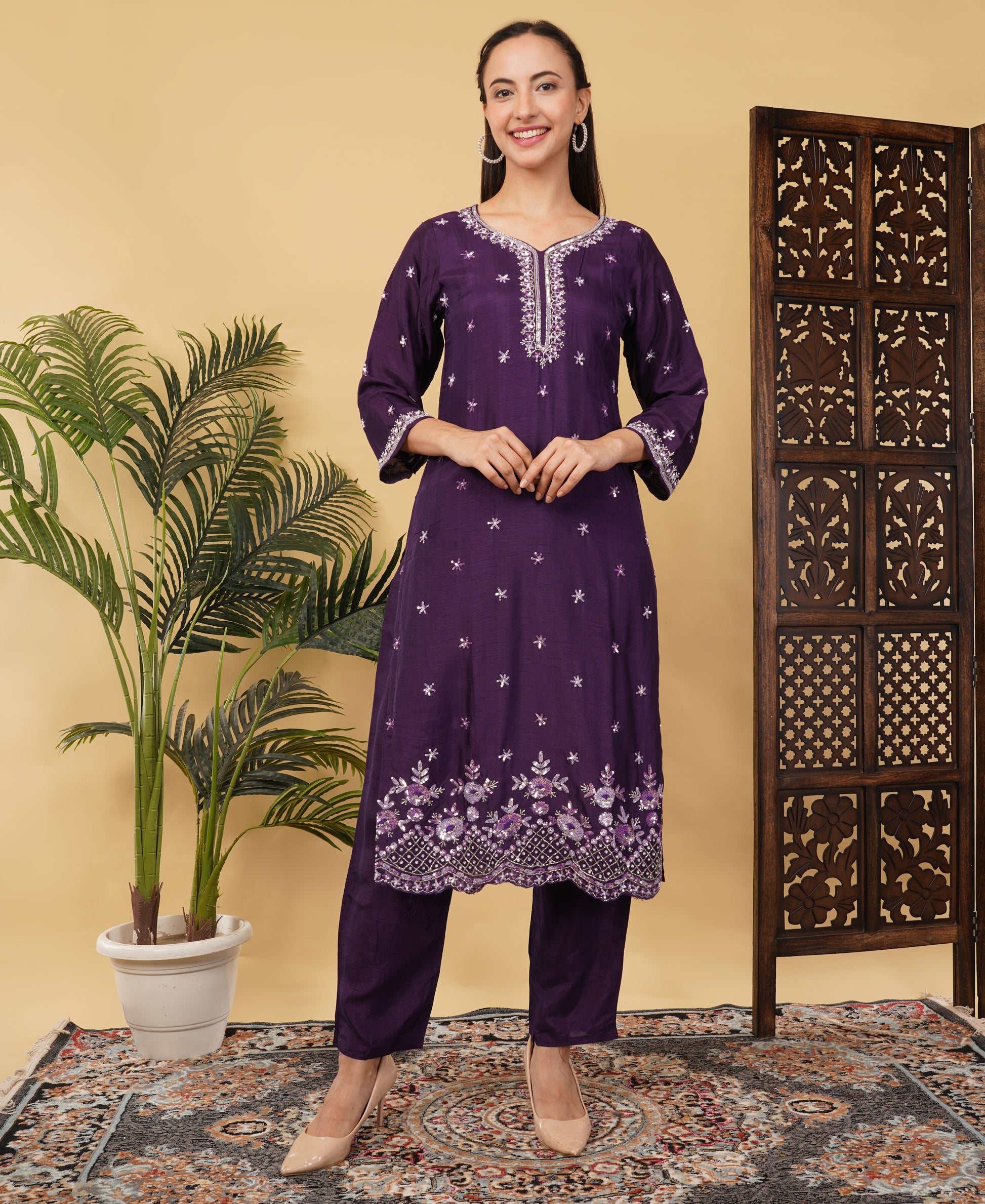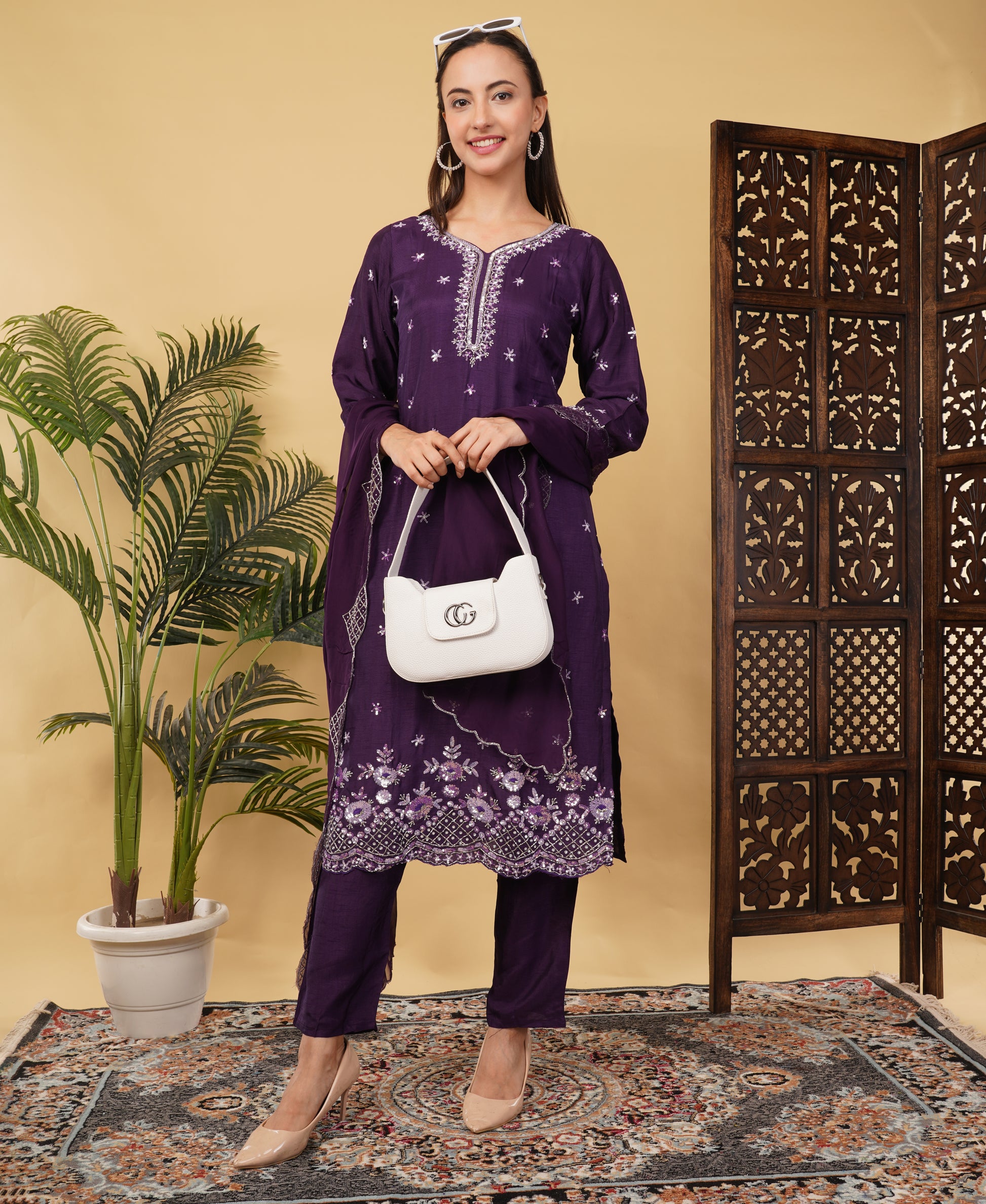 Prisachi Desinger neck embroidered kurta set with dupatta for Women
