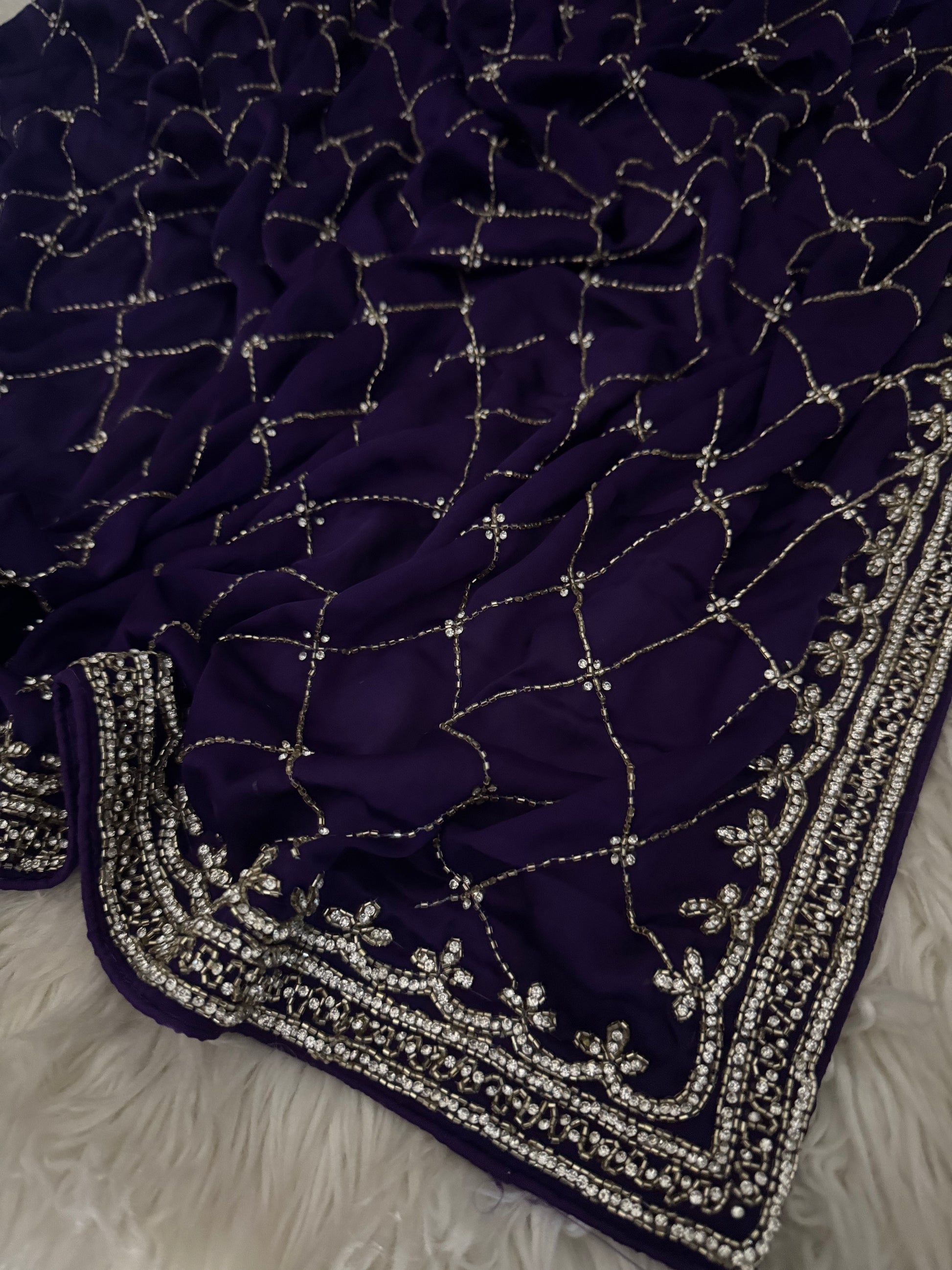 Prisachi Purple Designer Embroidered Saree with Unstitched Blouse is a perfect choice for weddings, wedding festive events, and special occasions. Featuring elegant embroidery and a beautiful Purple shade, the soft and graceful hue enhances its feminine charm. The finely embroidered borders and pallu create a rich designer look. Paired with an unstitched embroidered blouse, it allows you to customize the fit and style, ensuring comfort and sophistication—ideal for parties, celebrations, festivals, and traditional events