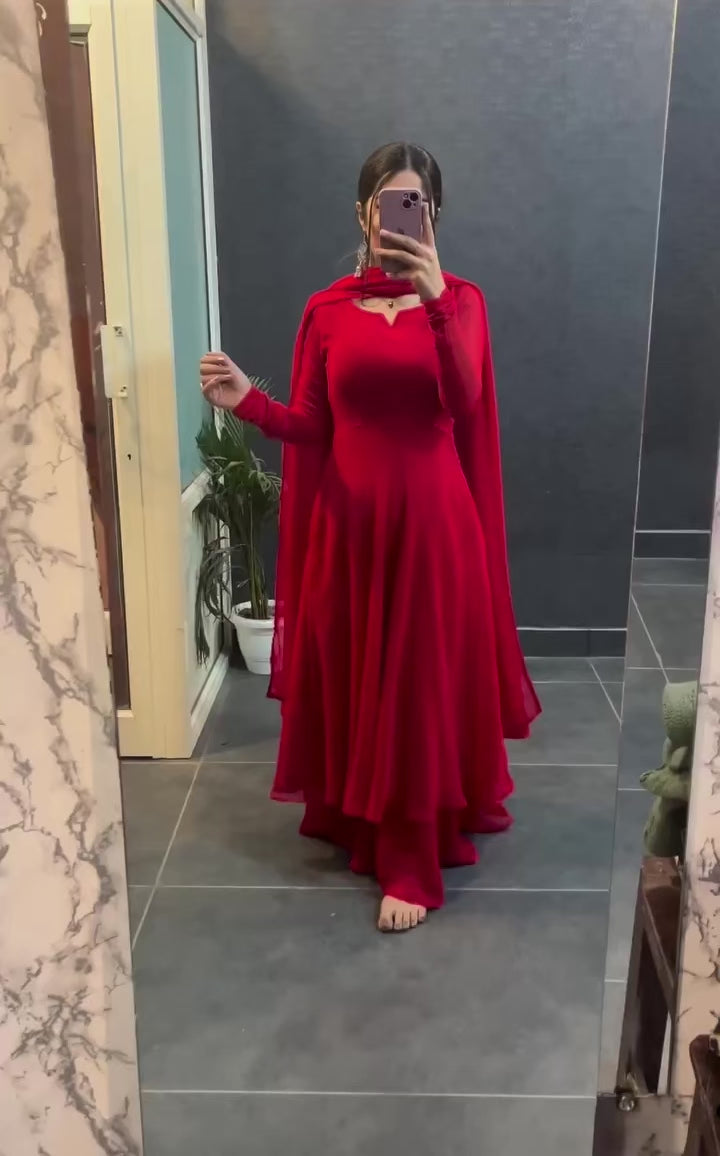 Our Red Embroidered Kurta Set with Dupatta will have you embracing vivid sophistication. The deep crimson color and elaborate embroidery on this outfit exude elegance. It's a versatile option for any event when paired with a coordinating dupatta, providing the ideal fusion of classic charm and modern flair for the style-conscious.