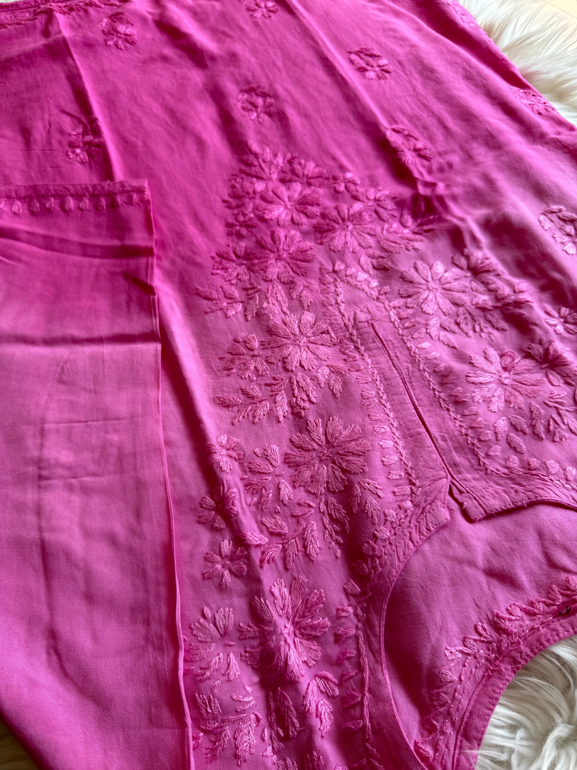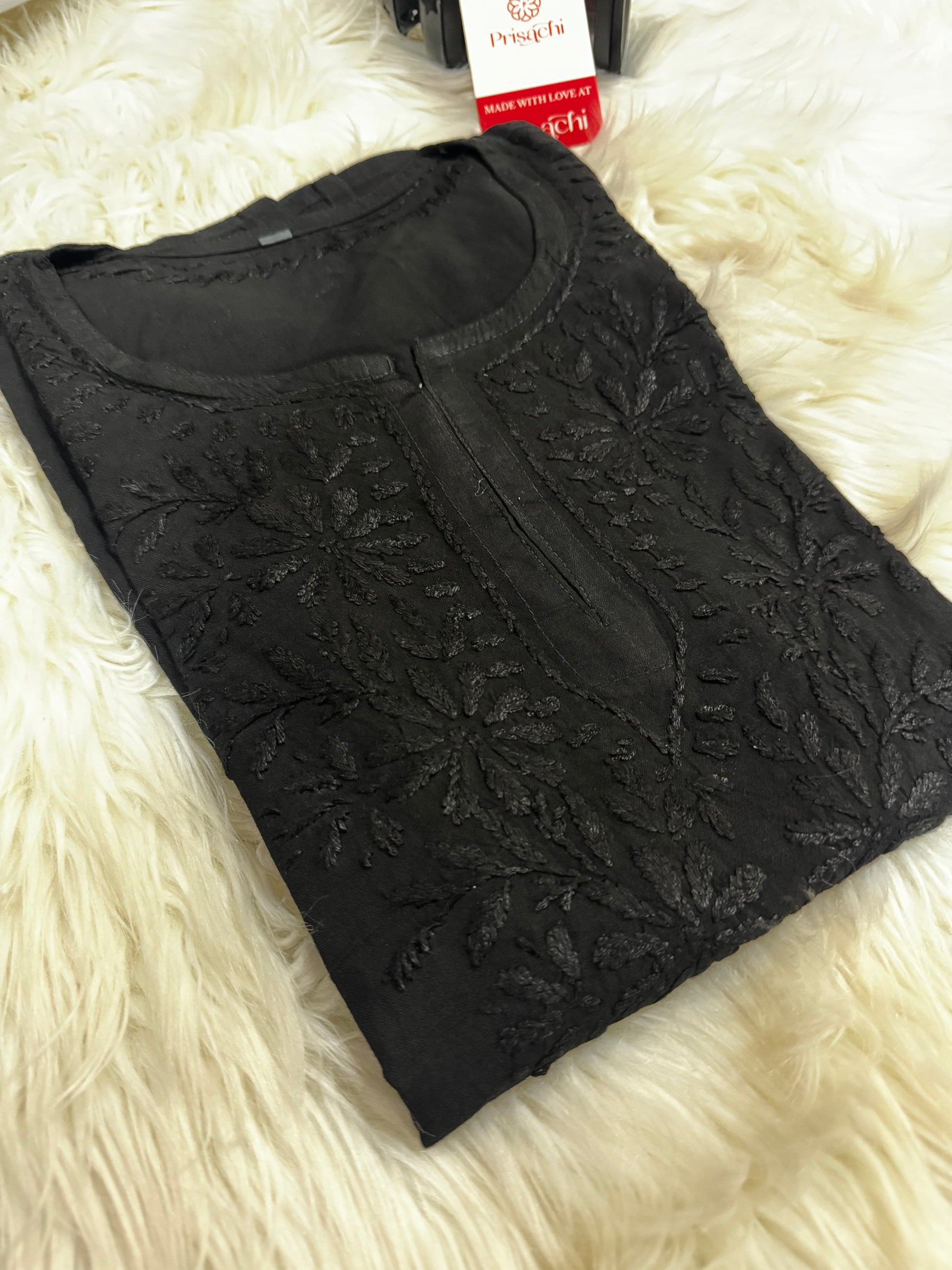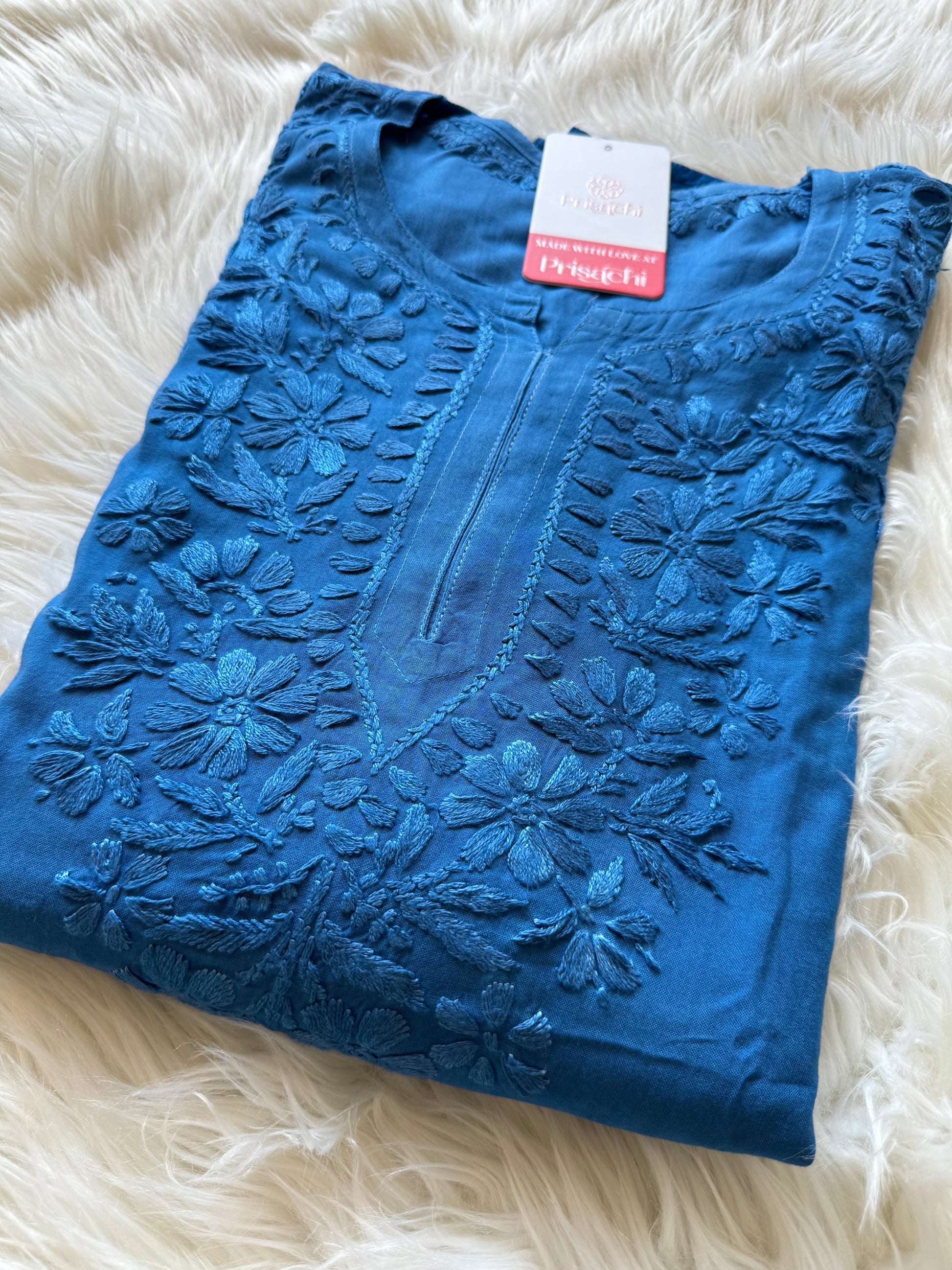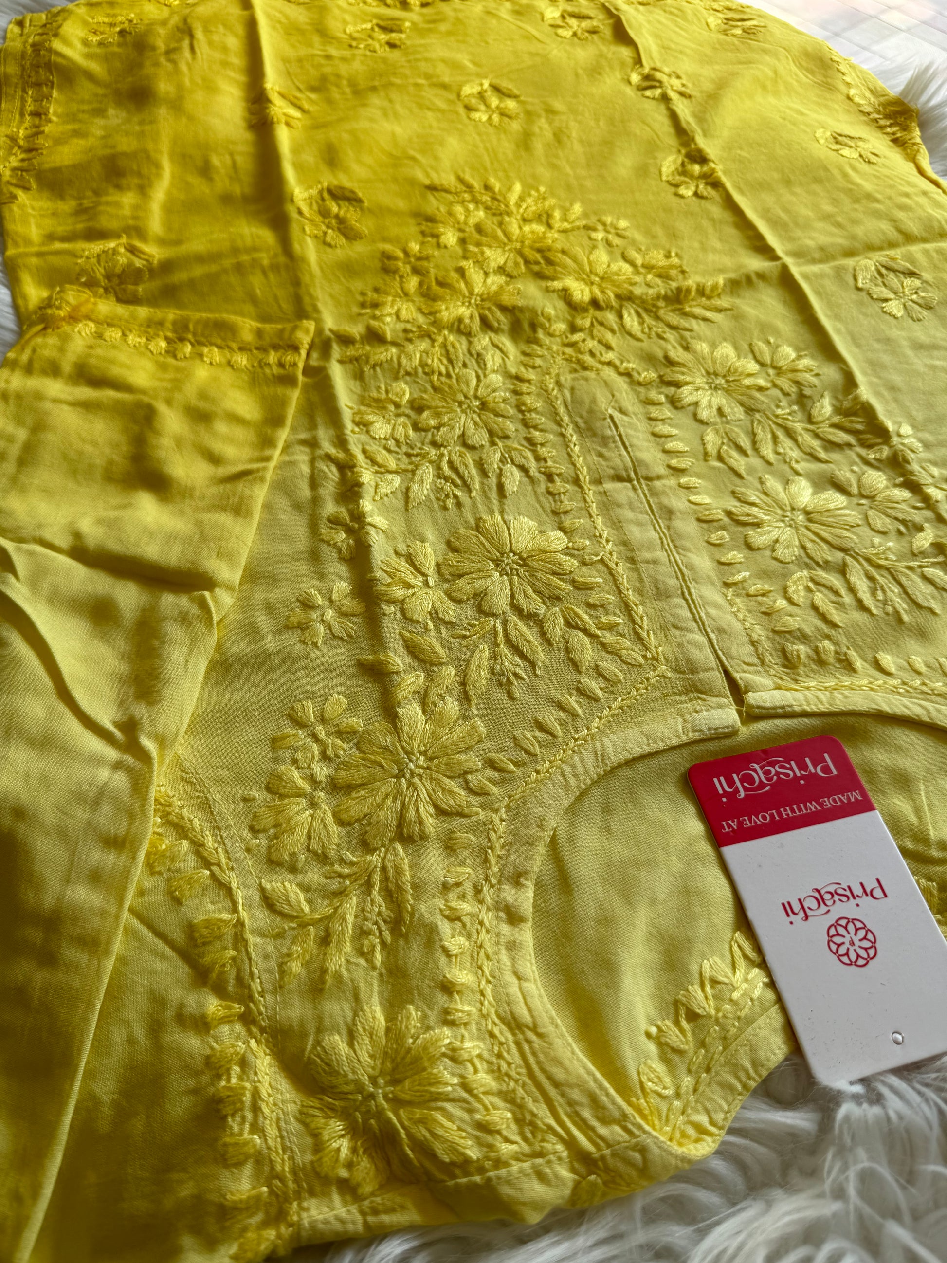 Our Short Chikankari Kurti will enhance your easy elegance. This adaptable garment, which offers comfort and flair, is expertly crafted and contains delicate Chikankari embroidery on soft cotton. Either dressed down or worn casually, it perfectly combines modern and traditional elements, giving your wardrobe's staple pieces a refined touch.