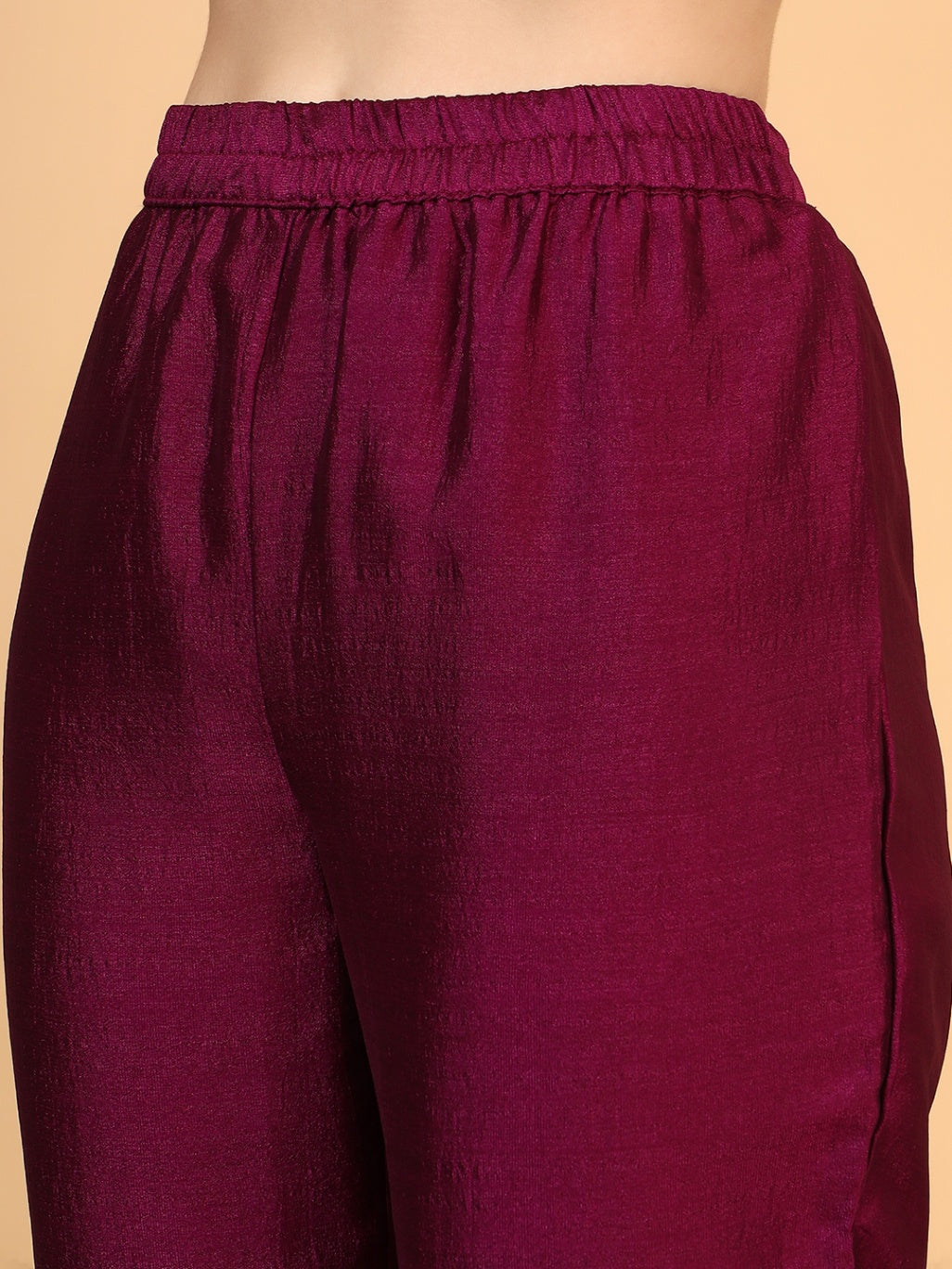 Women Wine Designer Embroidered Kurta set with dupatta with Pant