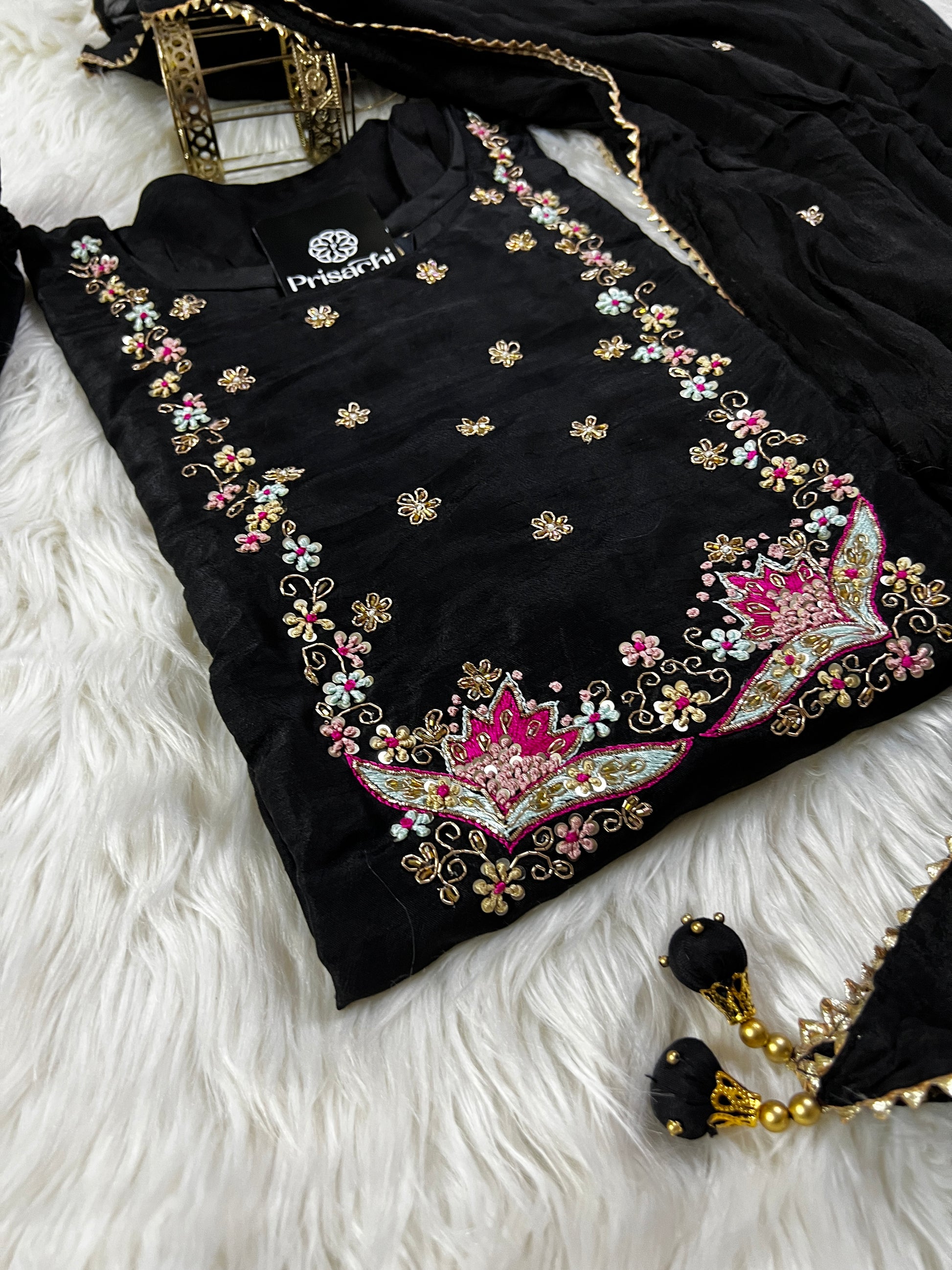 Our Yellow Embroidered Kurta Set with Dupatta will have you embracing vivid sophistication. The deep crimson color and elaborate embroidery on this outfit exude elegance. It's a versatile option for any event when paired with a coordinating dupatta, providing the ideal fusion of classic charm and modern flair for the style-conscious.